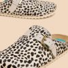 A look that says ‘I’m on the prowl (and I’ve never felt comfier).’ Easy, Nordic-style shoes with hand-stitching, buckle-detail and a grr-eat print.