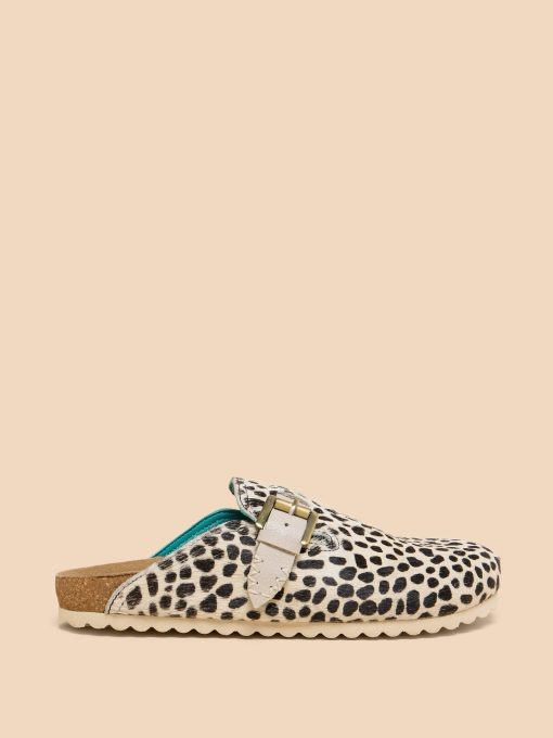 A look that says ‘I’m on the prowl (and I’ve never felt comfier).’ Easy, Nordic-style shoes with hand-stitching, buckle-detail and a grr-eat print.