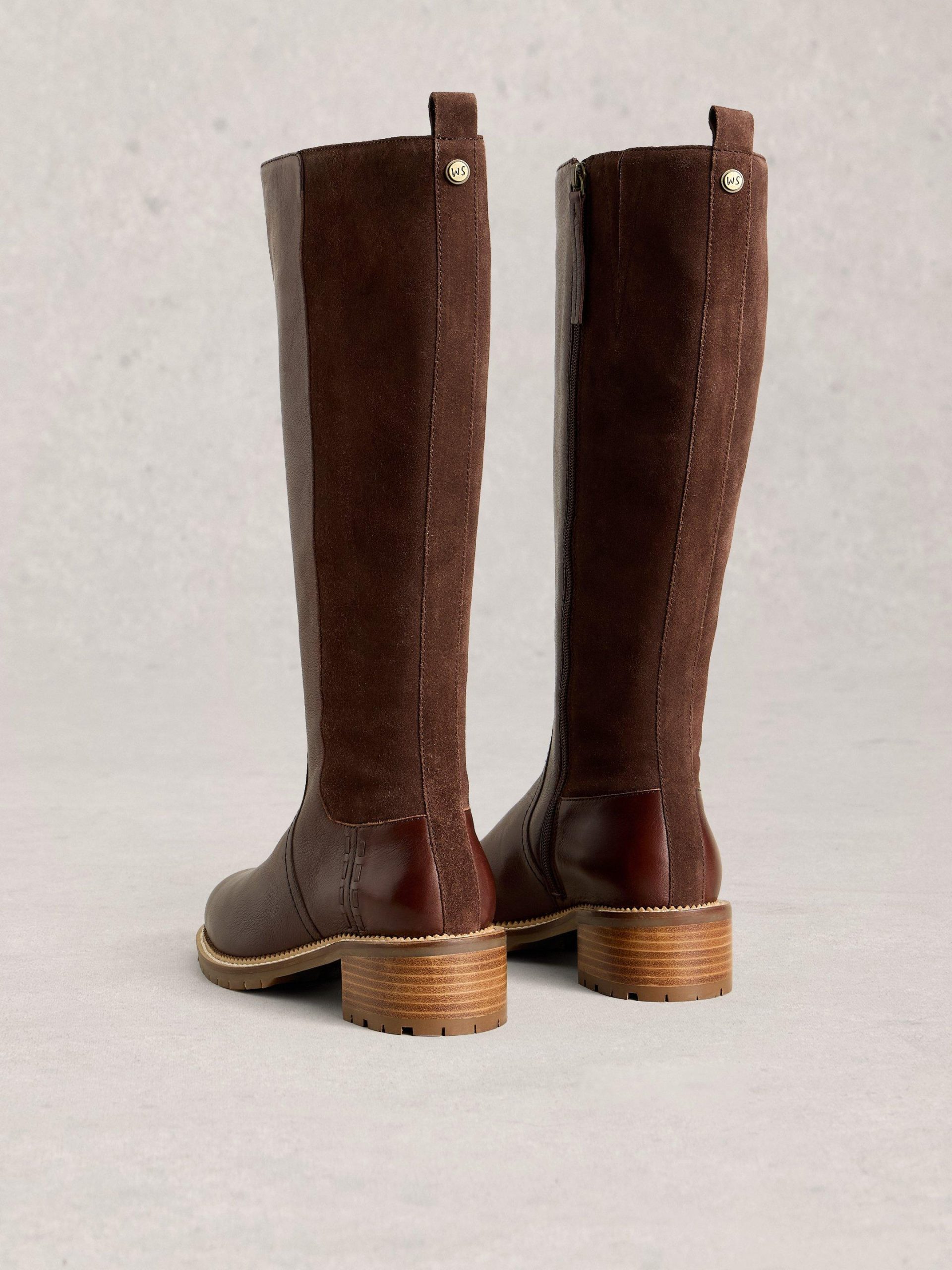 Knee-high boots in a mix of leather and suede. Boring footwear’s been given the boot.