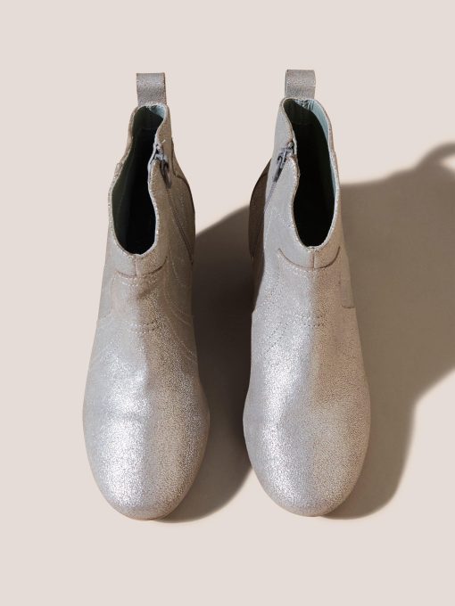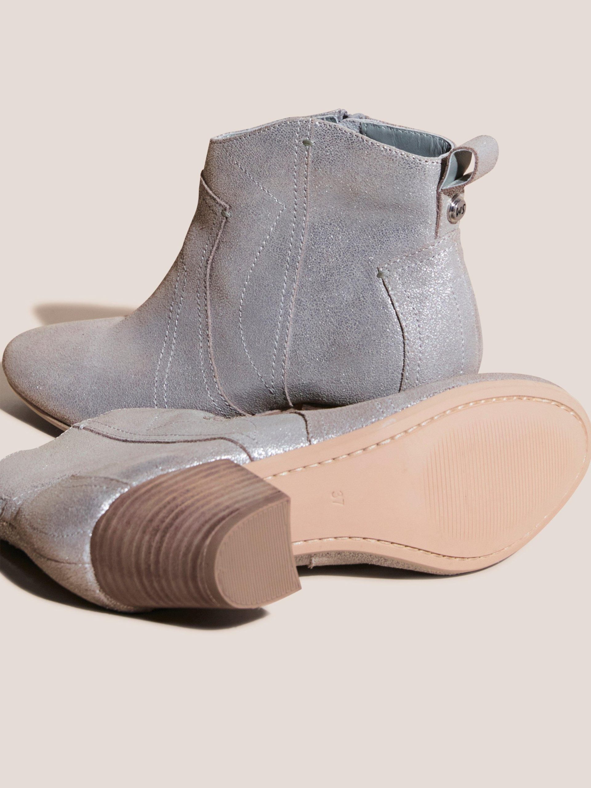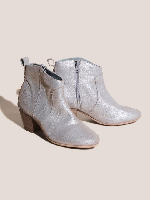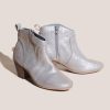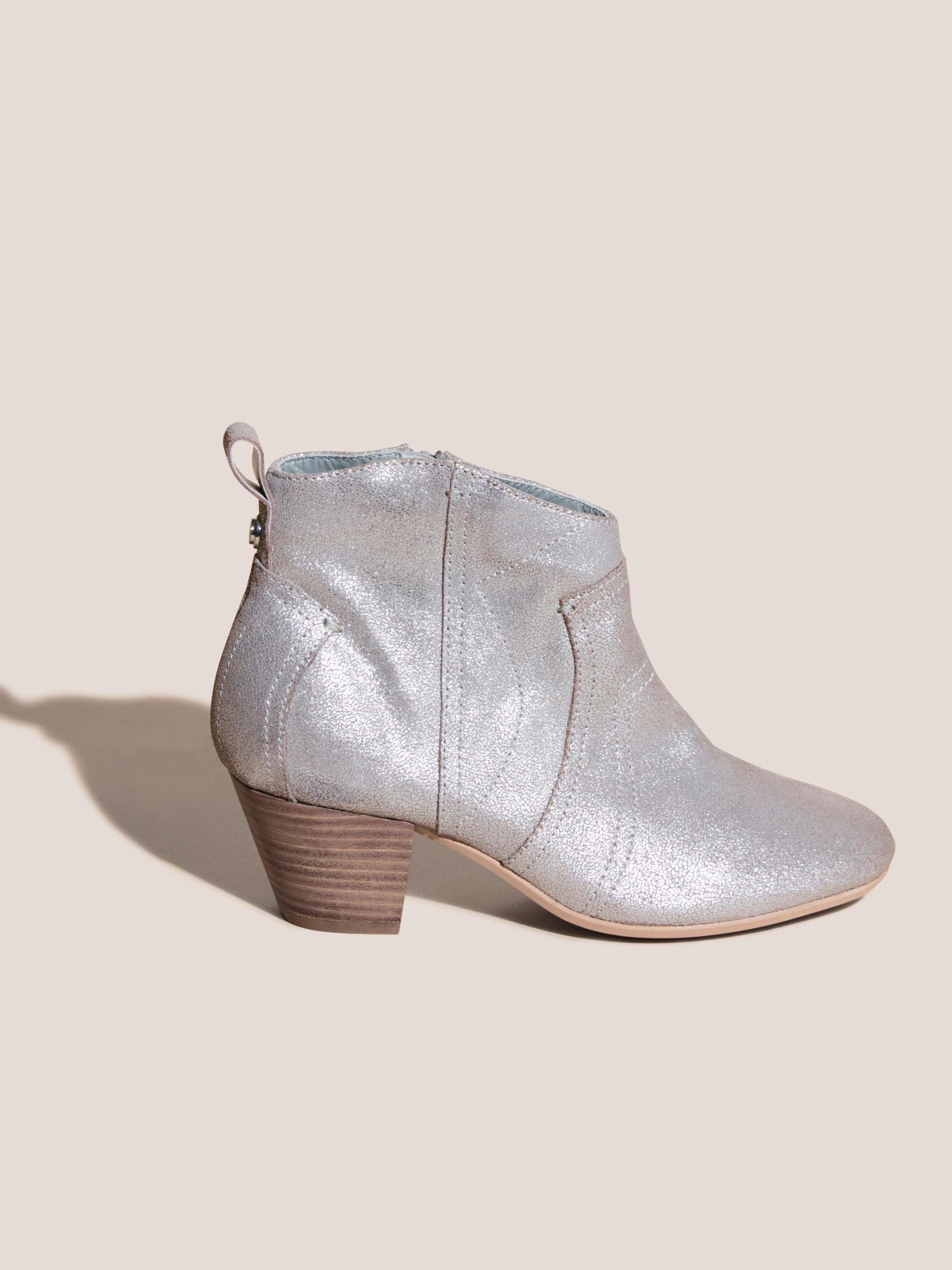 Western-style ankle boots with an easy-to-wear heel. Boring footwear’s got the boot.