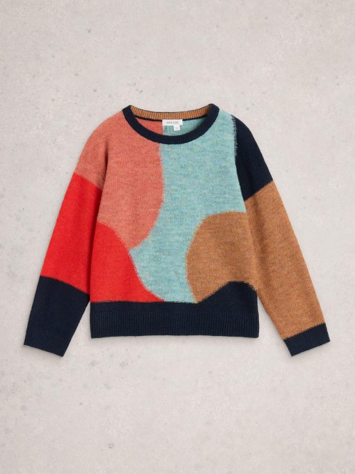 Give this jumper a swirl. With an abstract pattern that ticks all the colour boxes. (Plus it’s made using recycled polyester.)