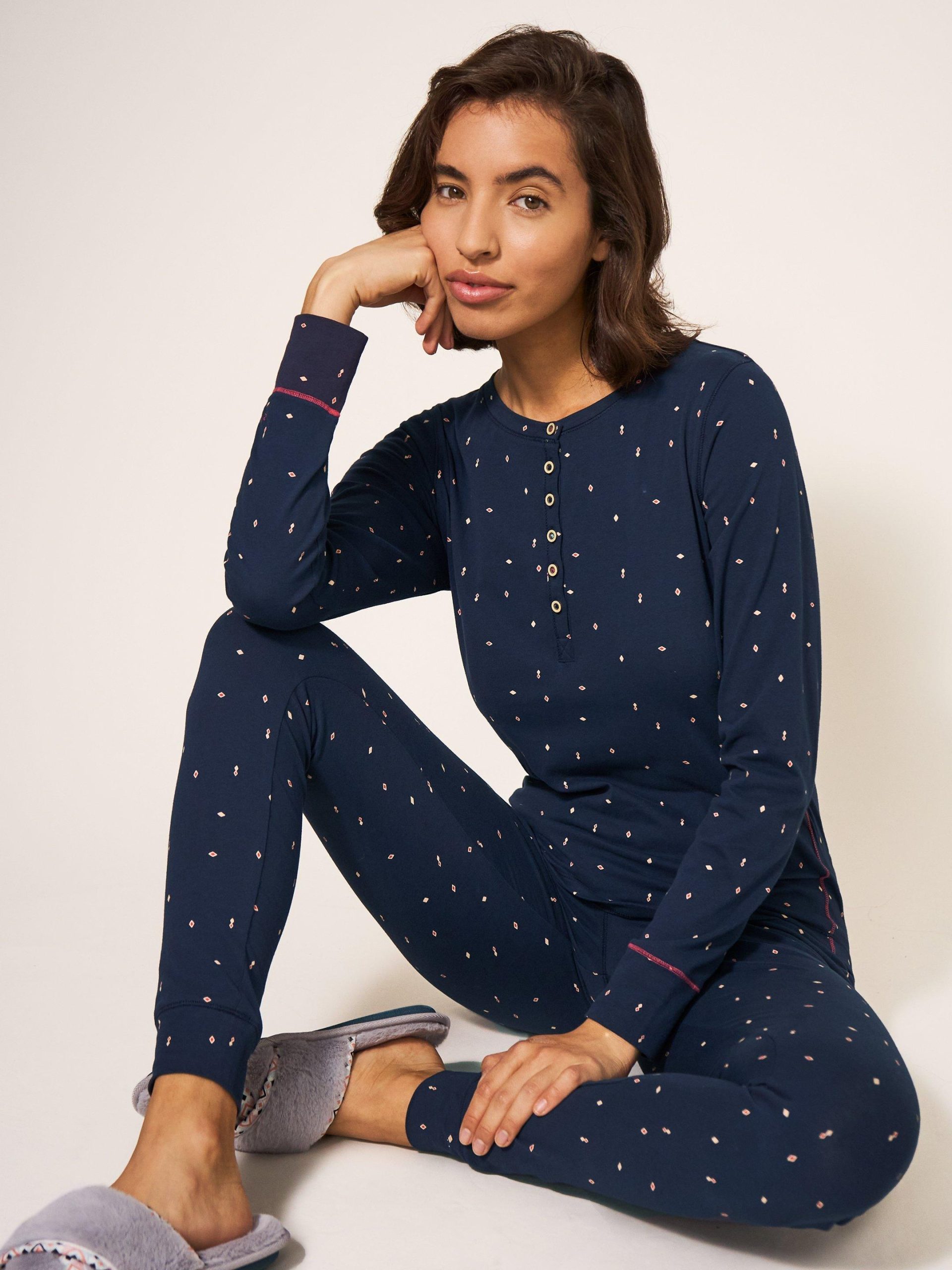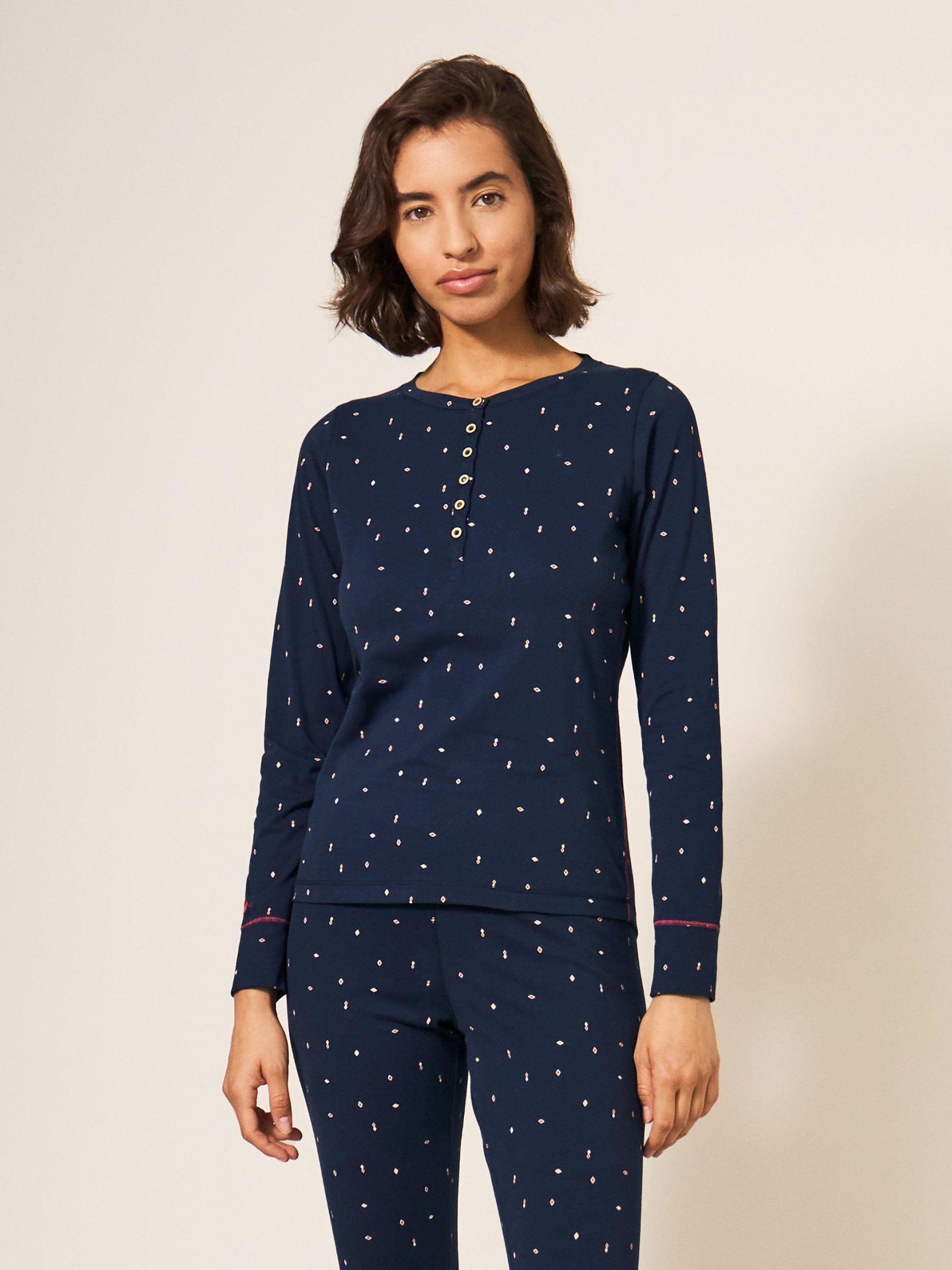 White Stuff Women’s Geo Printed Henley Pj Top | Navy Multi