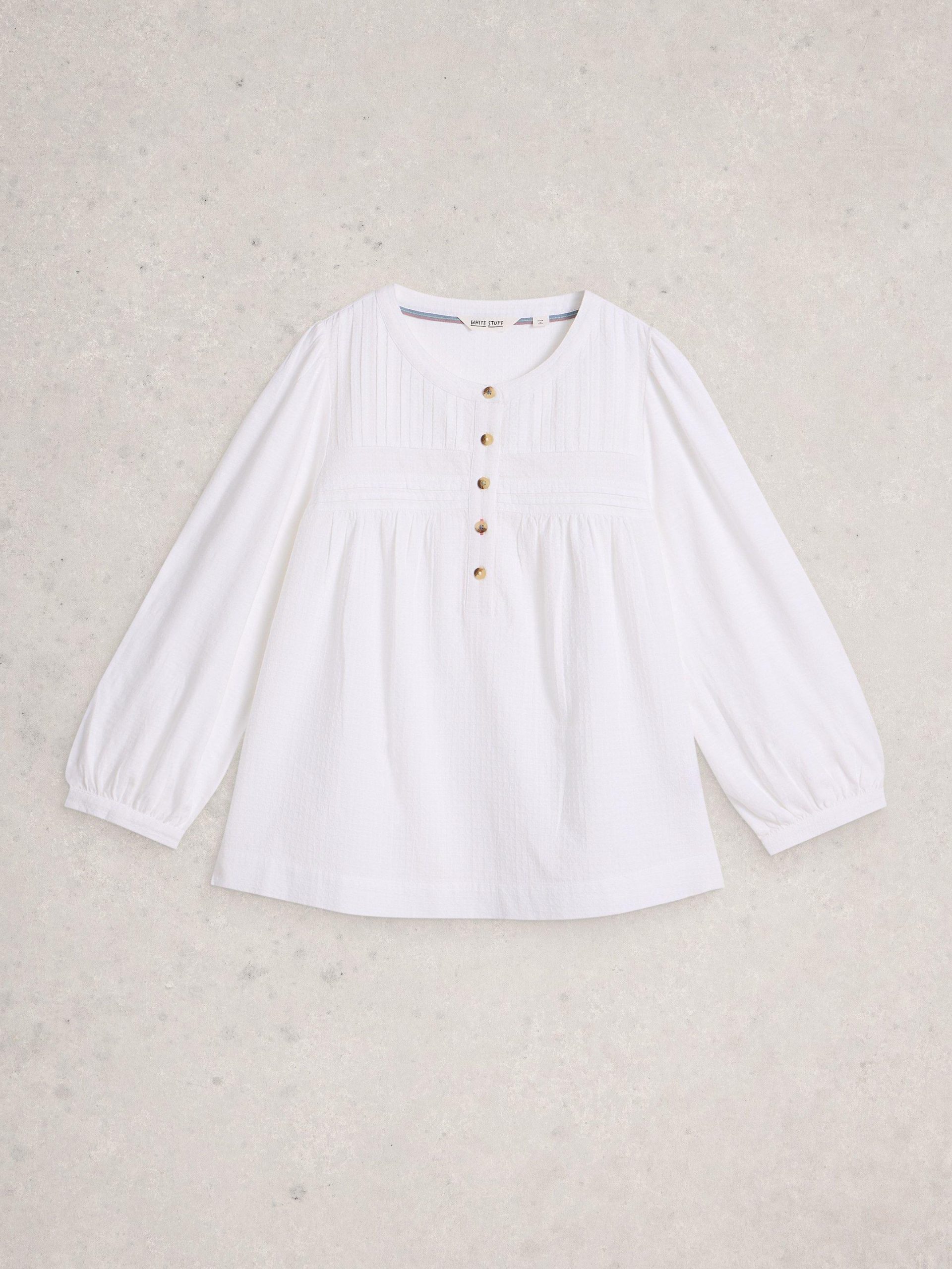 A floaty top with a folky feel. Yoke tuck detailing and 3/4 sleeves. We love pairing it with wide-leg jeans and slouchy boots.