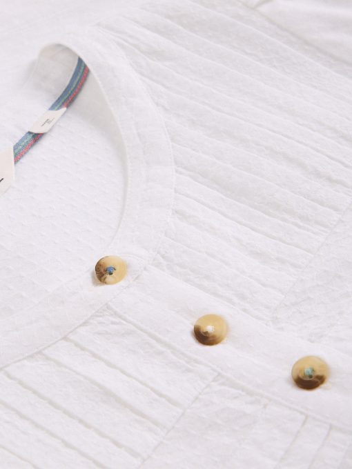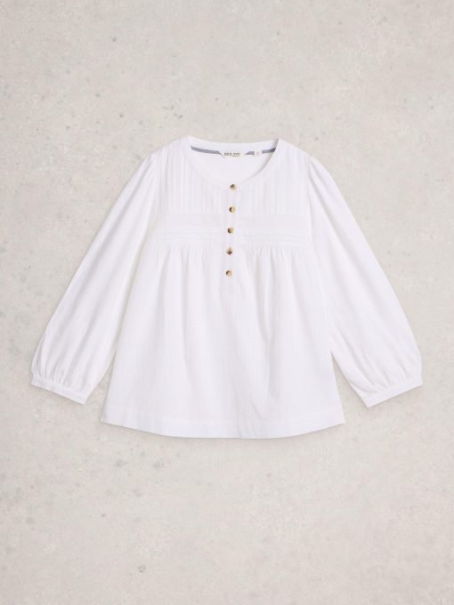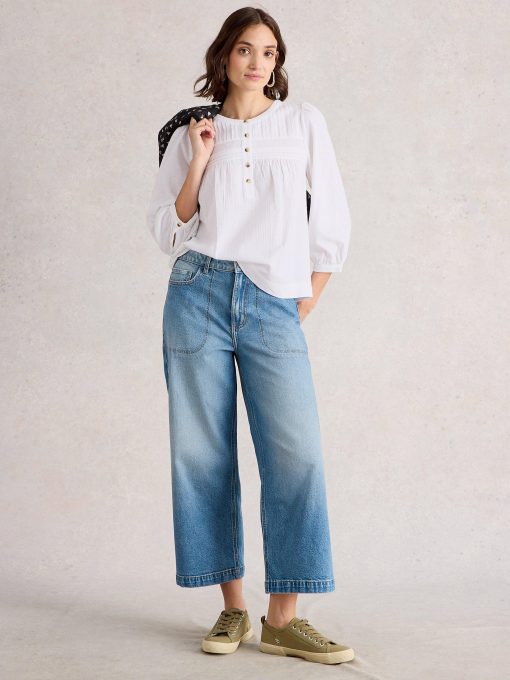 A floaty top with a folky feel. Yoke tuck detailing and 3/4 sleeves. We love pairing it with wide-leg jeans and slouchy boots.