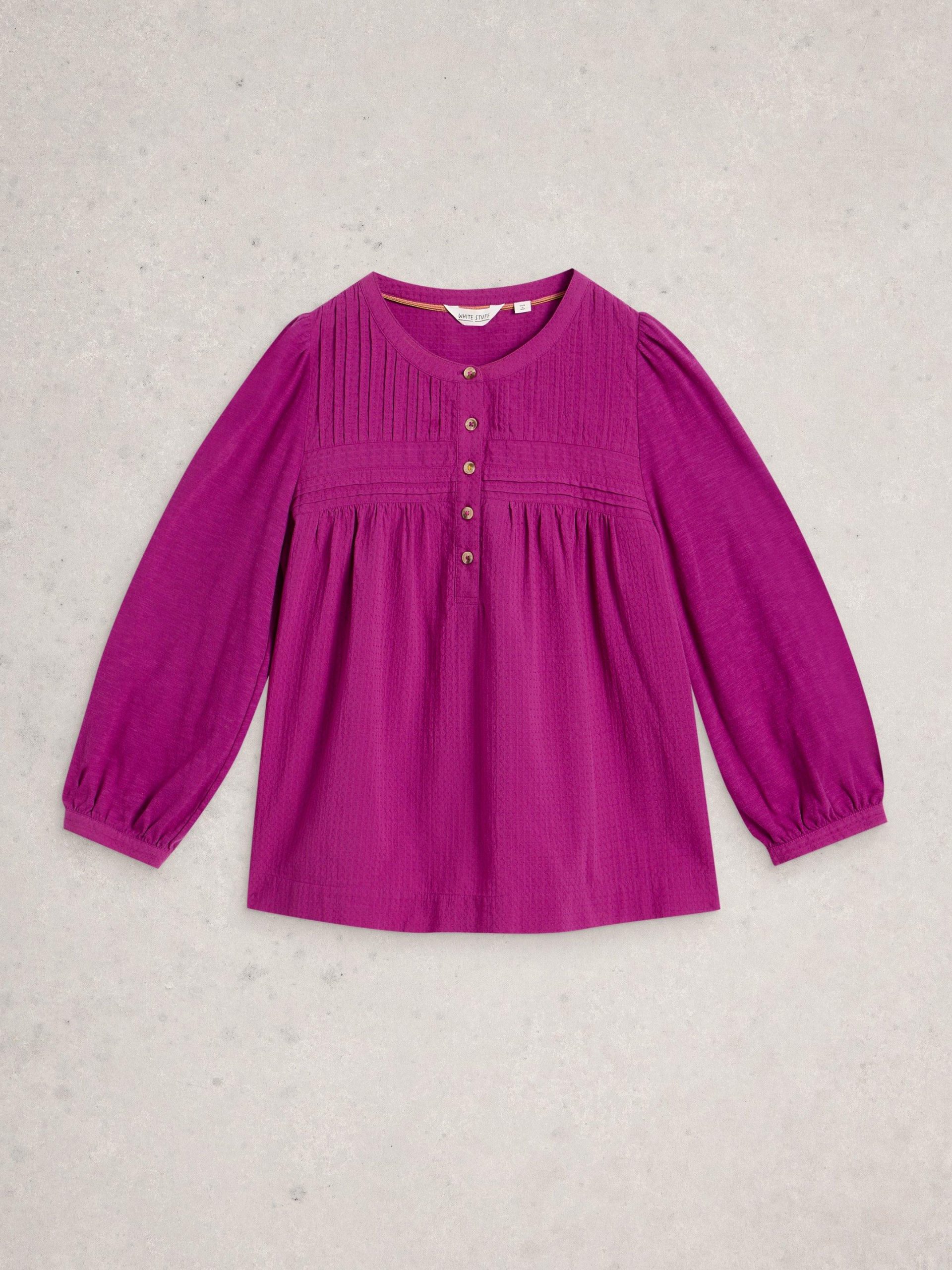 A floaty top with a folky feel. Yoke tuck detailing and 3/4 sleeves. We love pairing it with wide-leg jeans and slouchy boots.