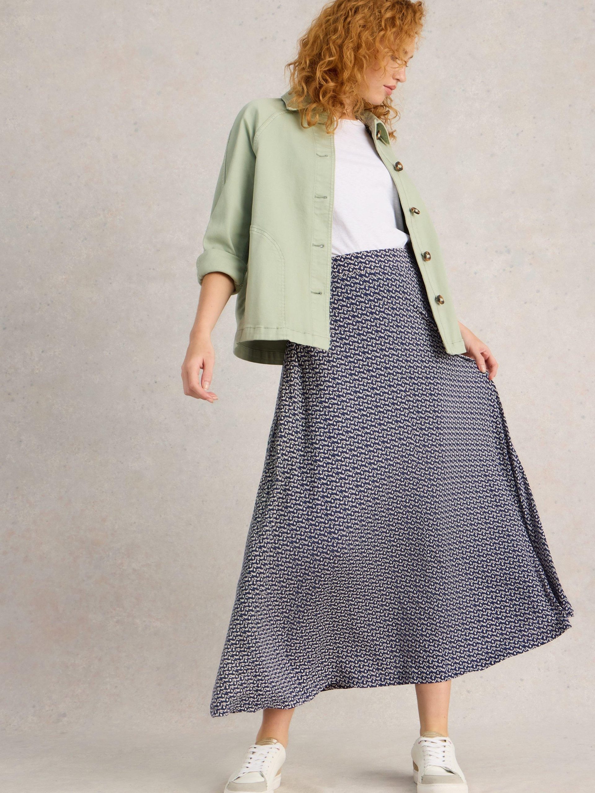 More outfit options than a dress, but a little more interesting than a pair of trousers. A versatile jersey maxi skirt. The maxi bit refers to the length, but it also applies to the styling options too.