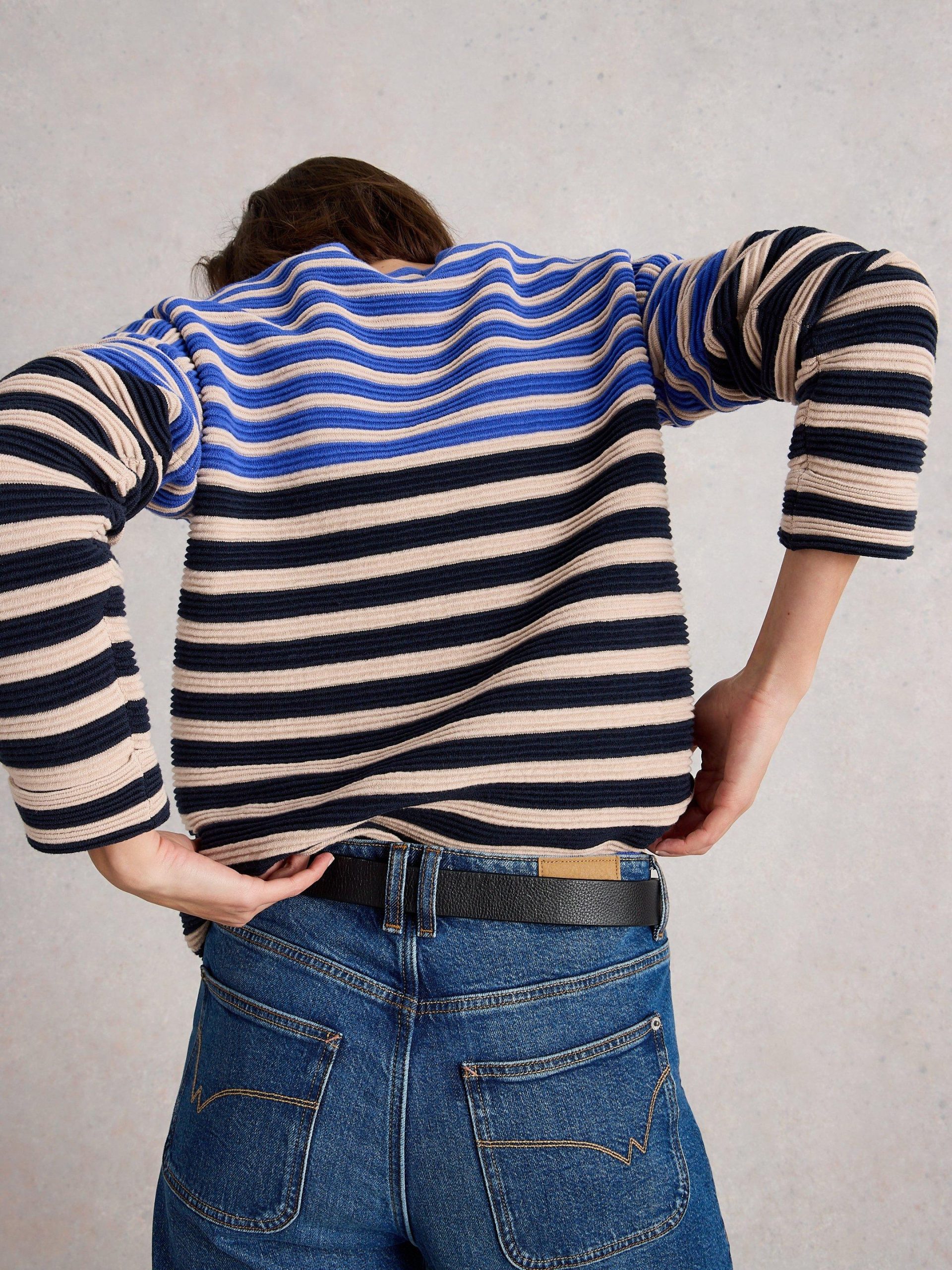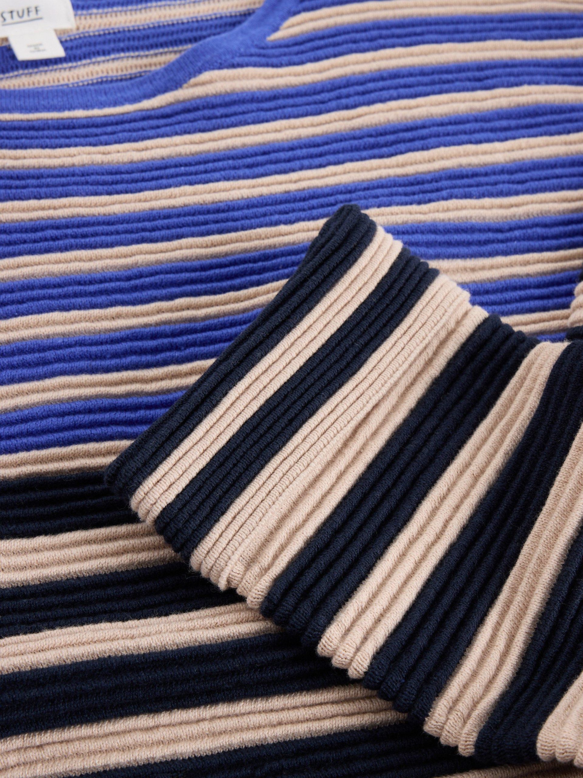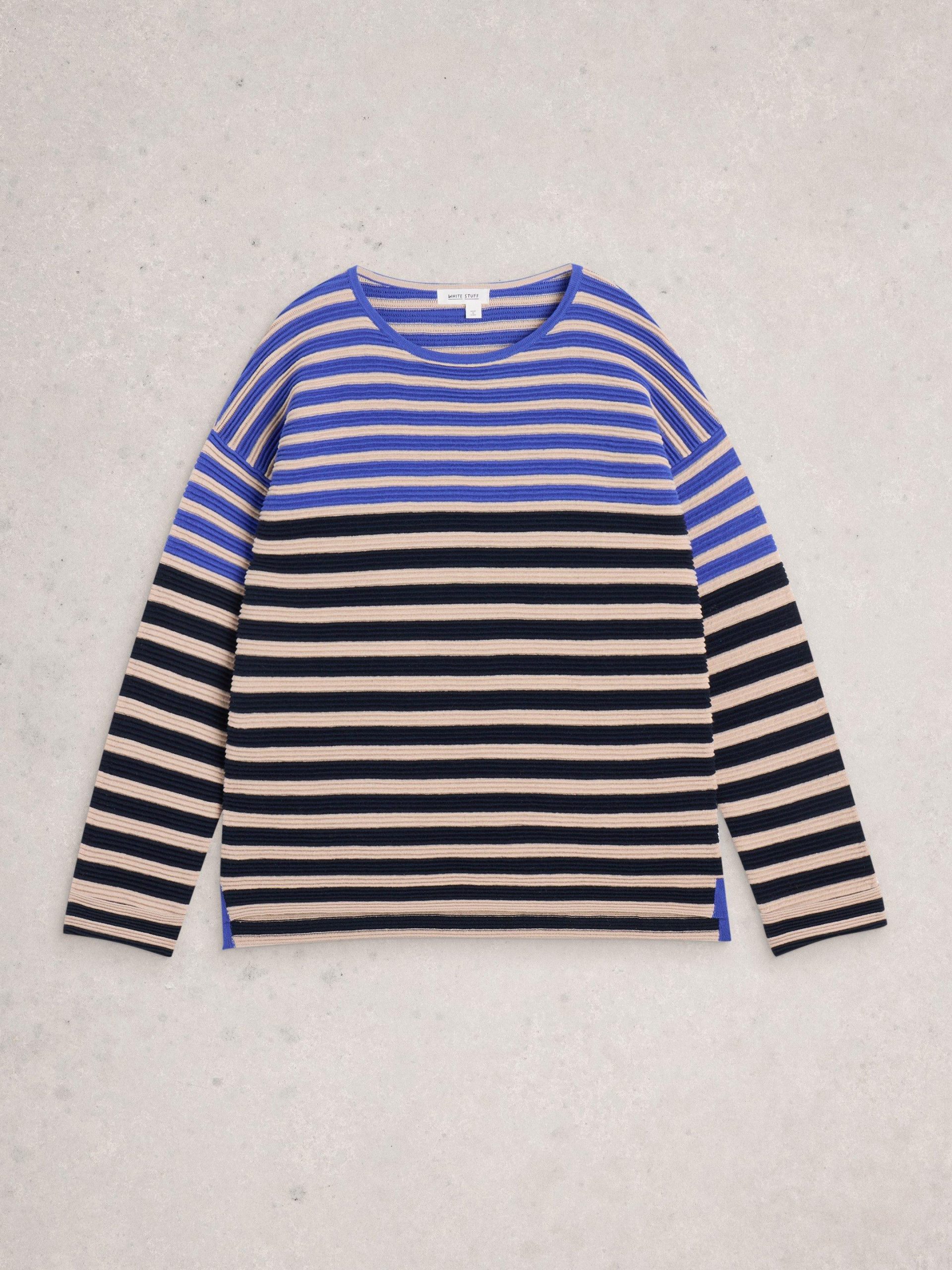The Jana jumper is made with soft organic cotton, in a tactile ottoman stitch. It’s soft. It’s stripey. And it’ll look great with your favourite jeans.
