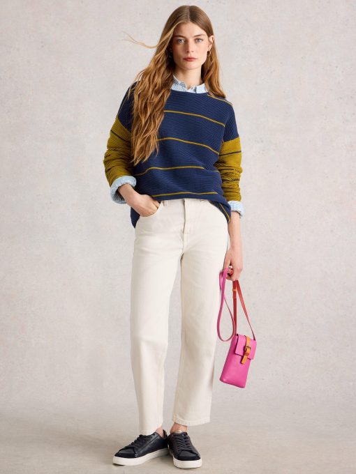 The Jana jumper is made with soft organic cotton, in a tactile ottoman stitch. It’s soft. It’s stripey. And it’ll look great with your favourite jeans.