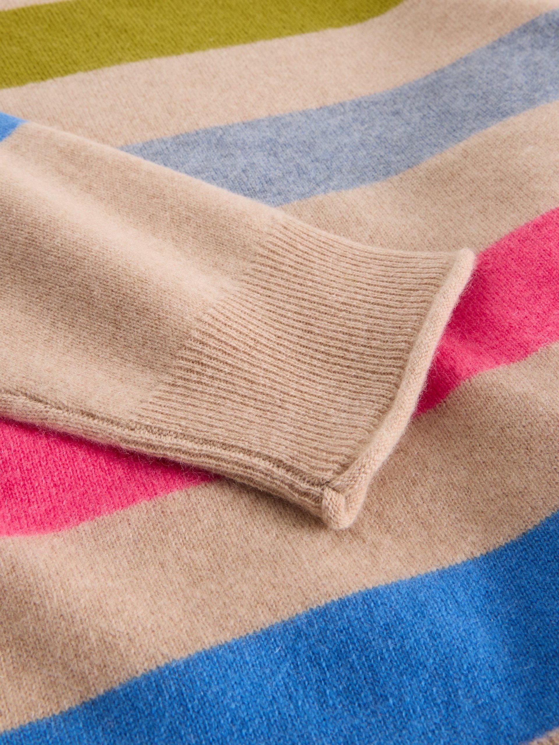 Your classic striped jumper (but made a little different). This one’s made with soft cashmere and has a rolled edge on the neck. (We like to add some edge.)