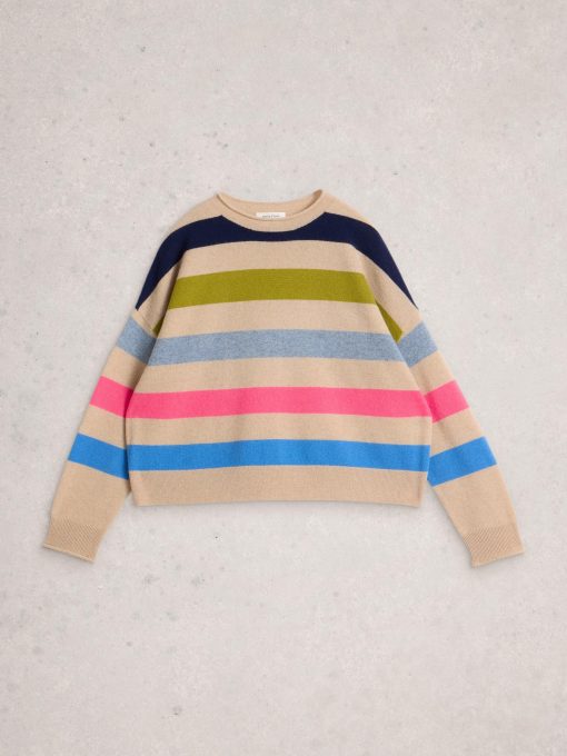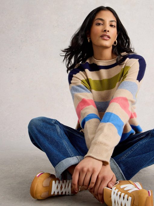 Your classic striped jumper (but made a little different). This one’s made with soft cashmere and has a rolled edge on the neck. (We like to add some edge.)