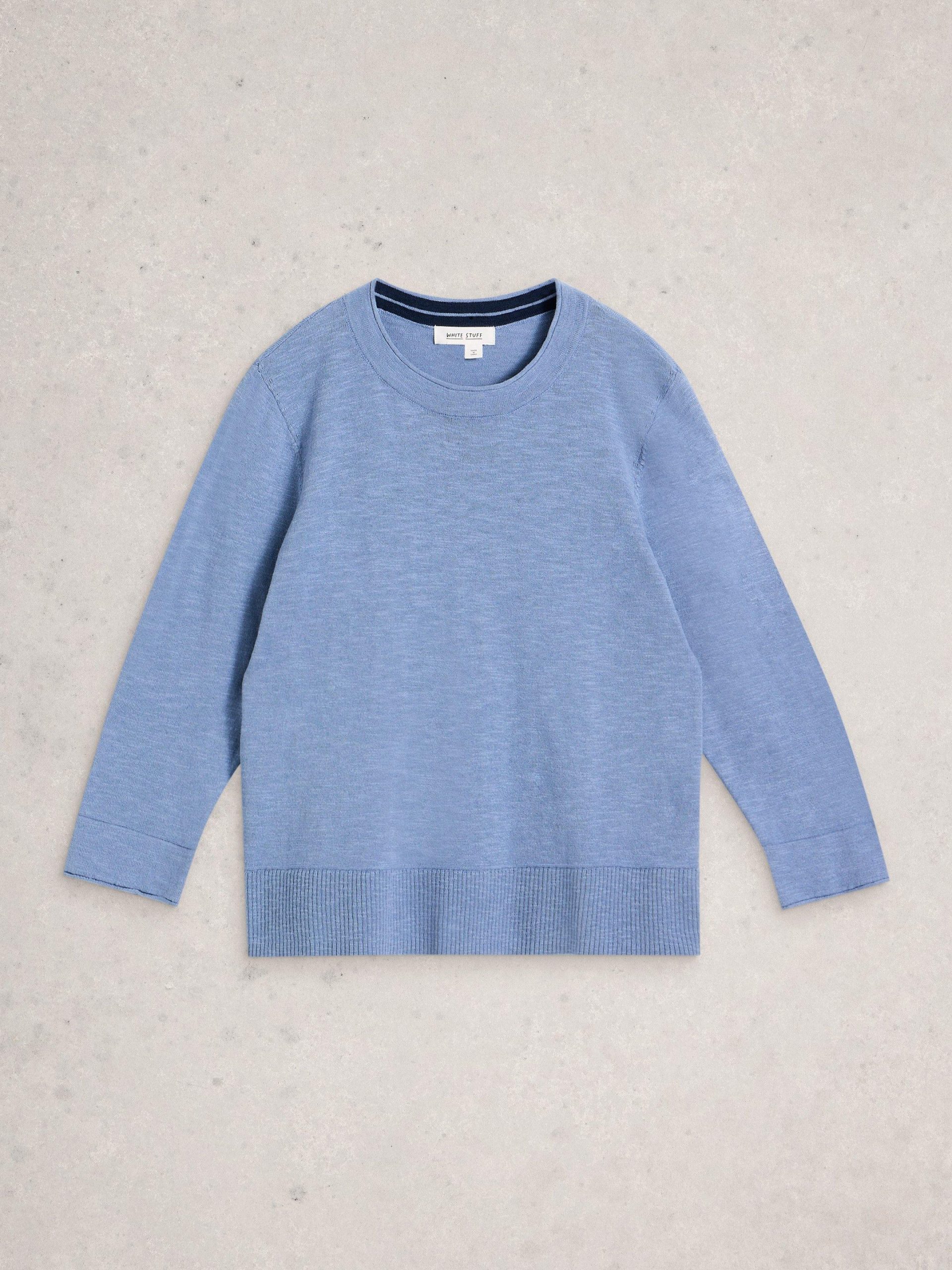 A soft linen-blend jumper. In a shade of blue that matches autumn skies.