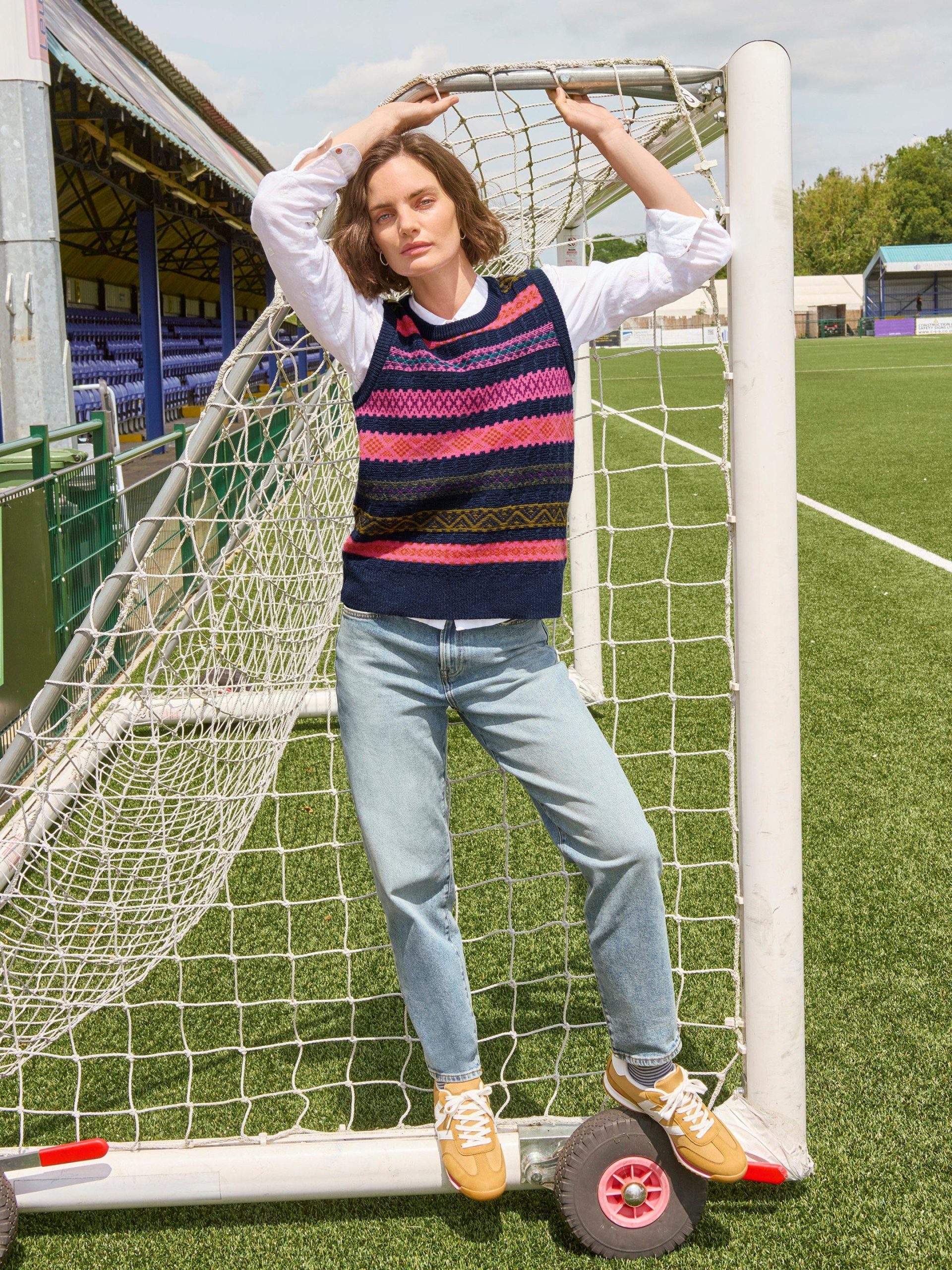 Do the bright thing and make this knitted tank your own. Style it with a white tee underneath, easy denim jeans, and ankle boots. (We’ve got all of those.)
