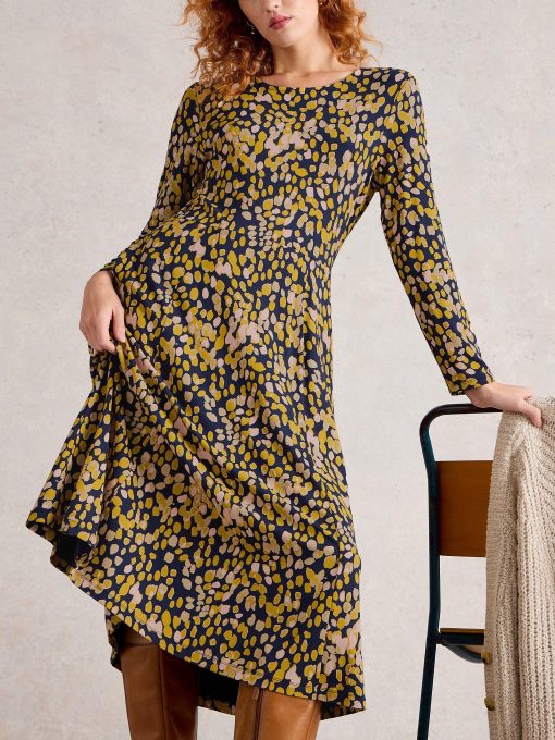 Don’t know what to wear? Enter the Madeline dress. She’s got a round neck and long sleeves for day-to-night ease. Ending nicely at the knee in a comfy jersey material.nStyle with these Boots