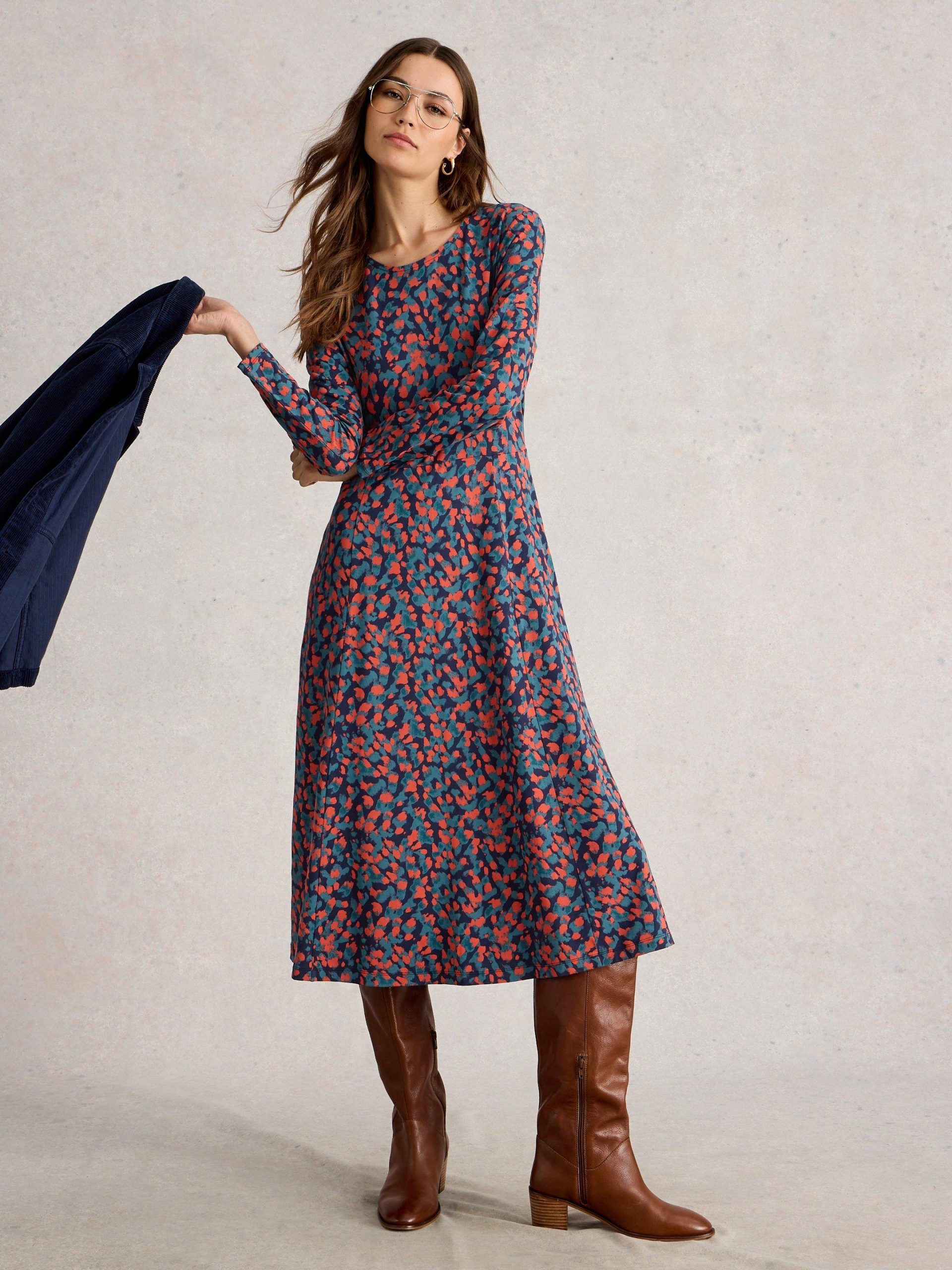 Don’t know what to wear? Enter the Madeline dress. She’s got a round neck and long sleeves for day-to-night ease. Ending nicely at the knee in a comfy jersey material.nStyle with these Boots