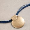 A statement necklace if we ever saw one. Navy rope adorned with a gold disc pendant.
