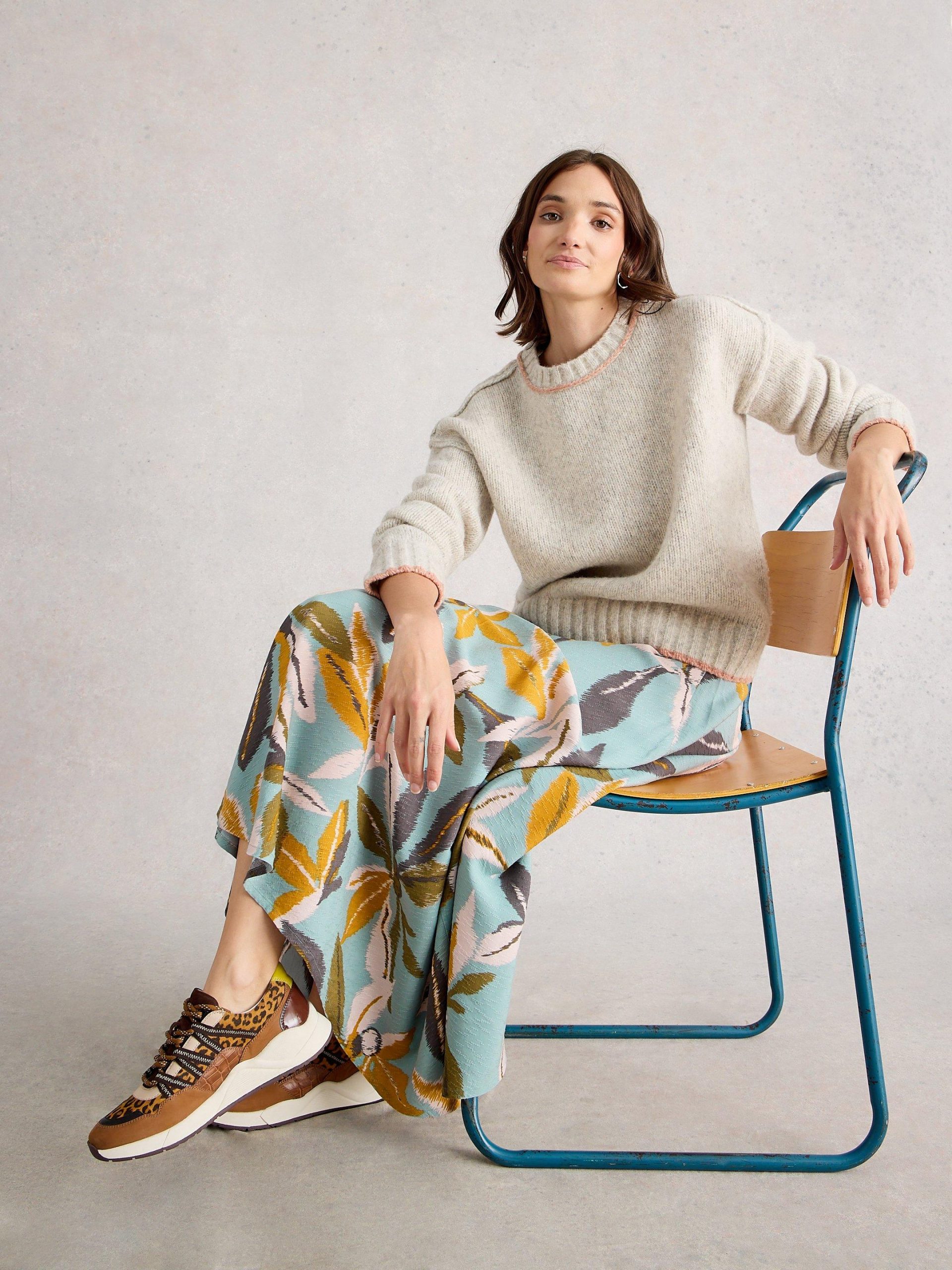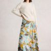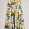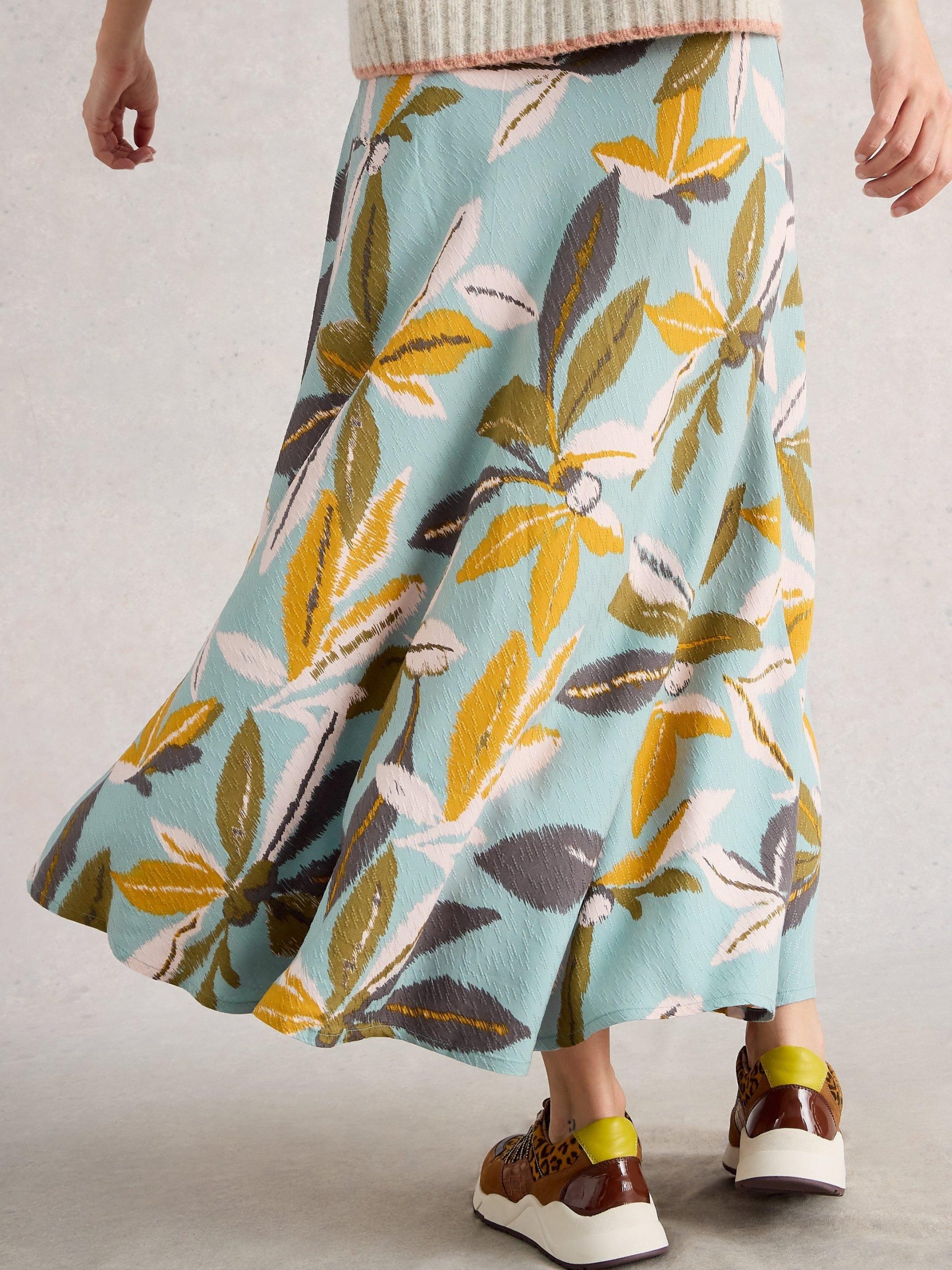This printed maxi skirt was cut on the bias. Which makes the bottom fuller and swishy, and the top a neat, snug fit. Dress it up with boots, a belt and a soft knit tucked in.