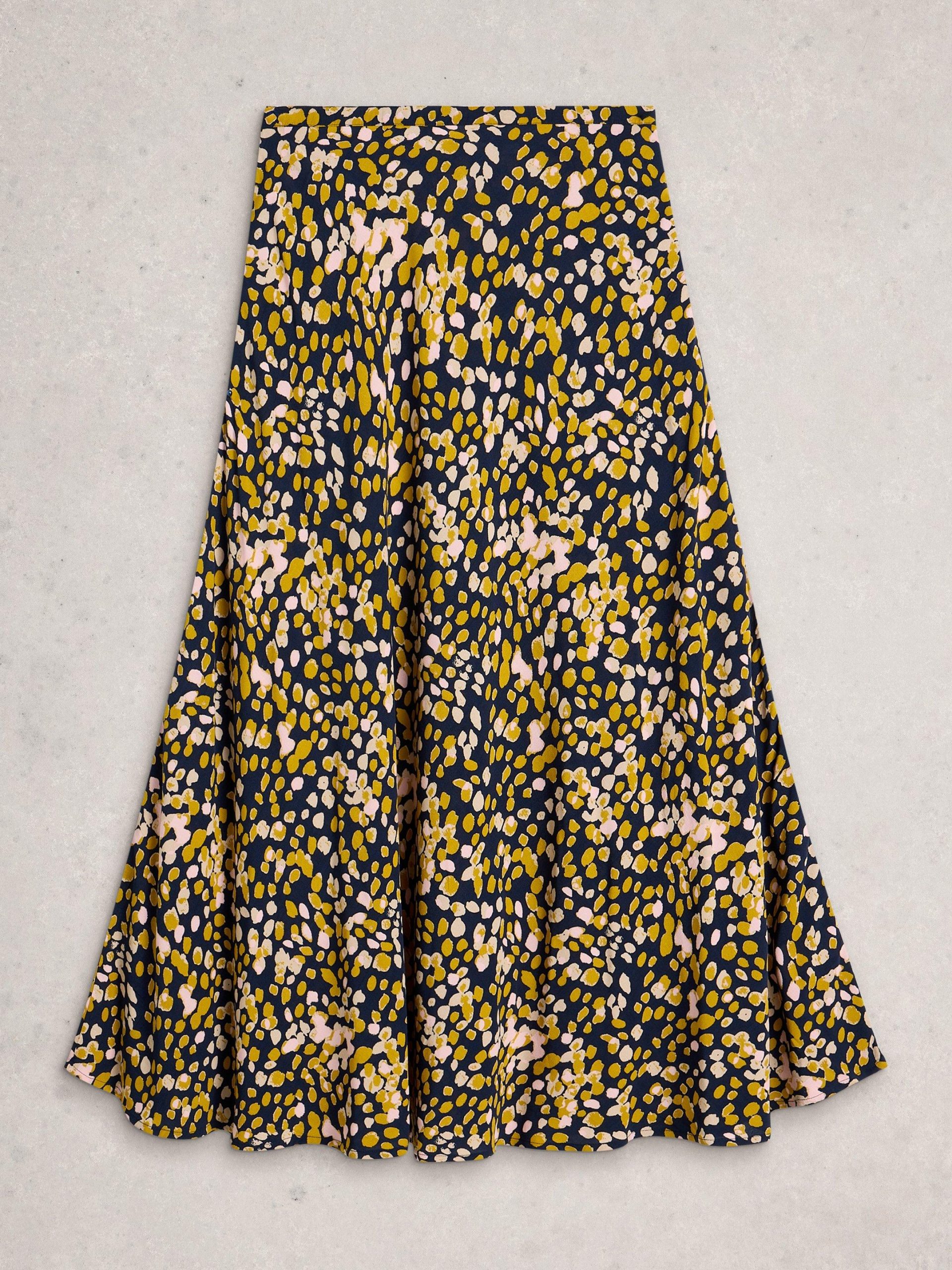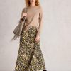 This printed maxi skirt was cut on the bias. Which makes the bottom fuller and swishy, and the top a neat, snug fit. Dress it up with boots, a belt and a soft knit tucked in.