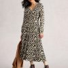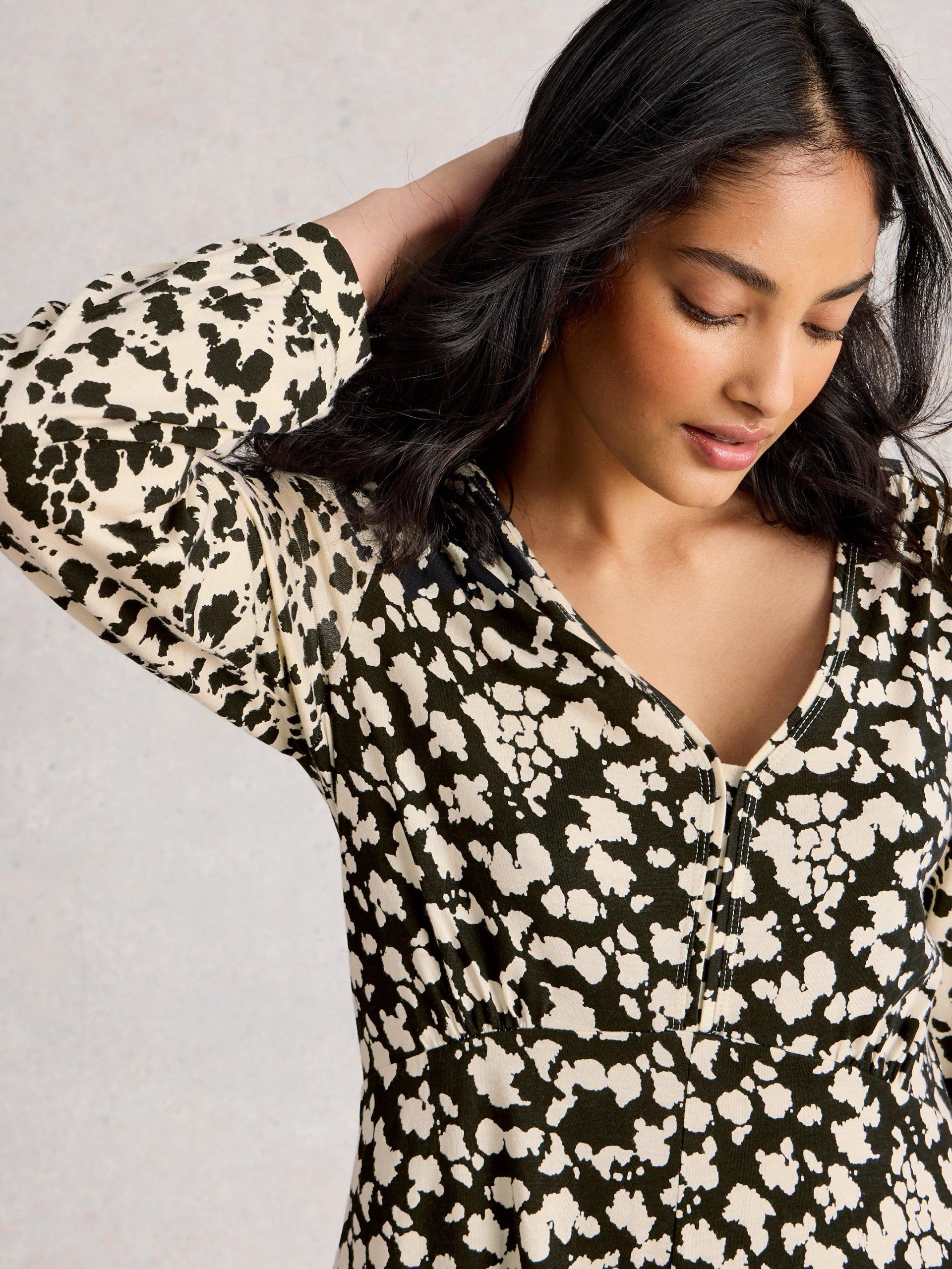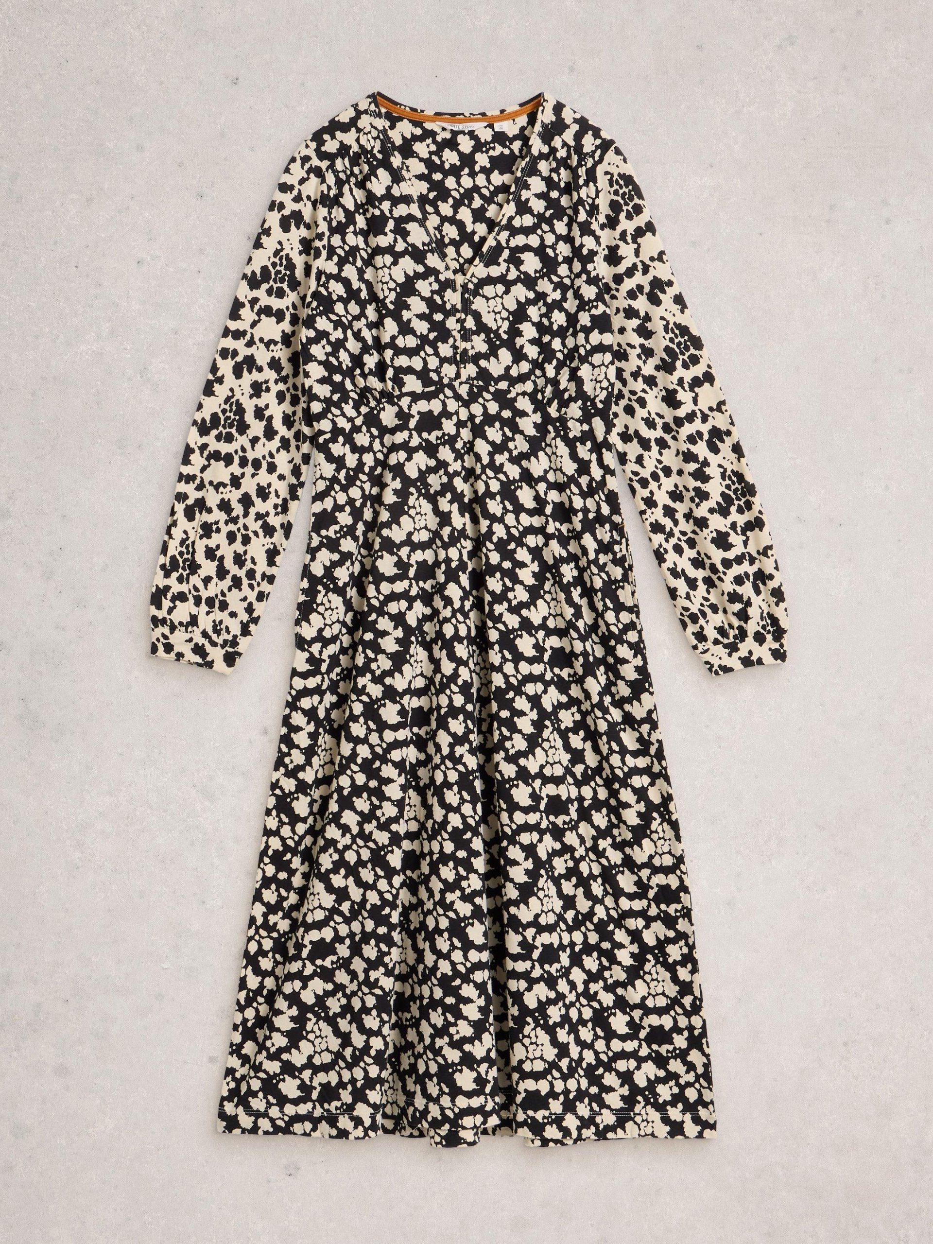 White Stuff Women’s Megan Long Sleeve Jersey Midi Dress | Black Print