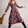 White Stuff Women’s Megan Long Sleeve Jersey Midi Dress | Chartreuse Multi