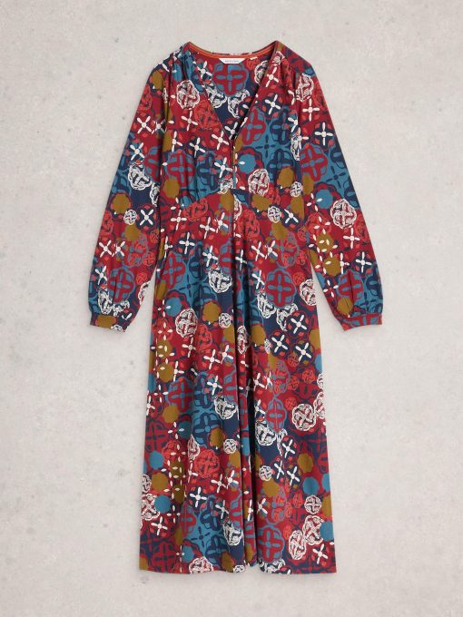 White Stuff Women’s Megan Long Sleeve Jersey Midi Dress | Chartreuse Multi