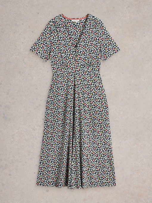 White Stuff Women’s Megan Short Sleeve Jersey Midi Dress | Navy Multi