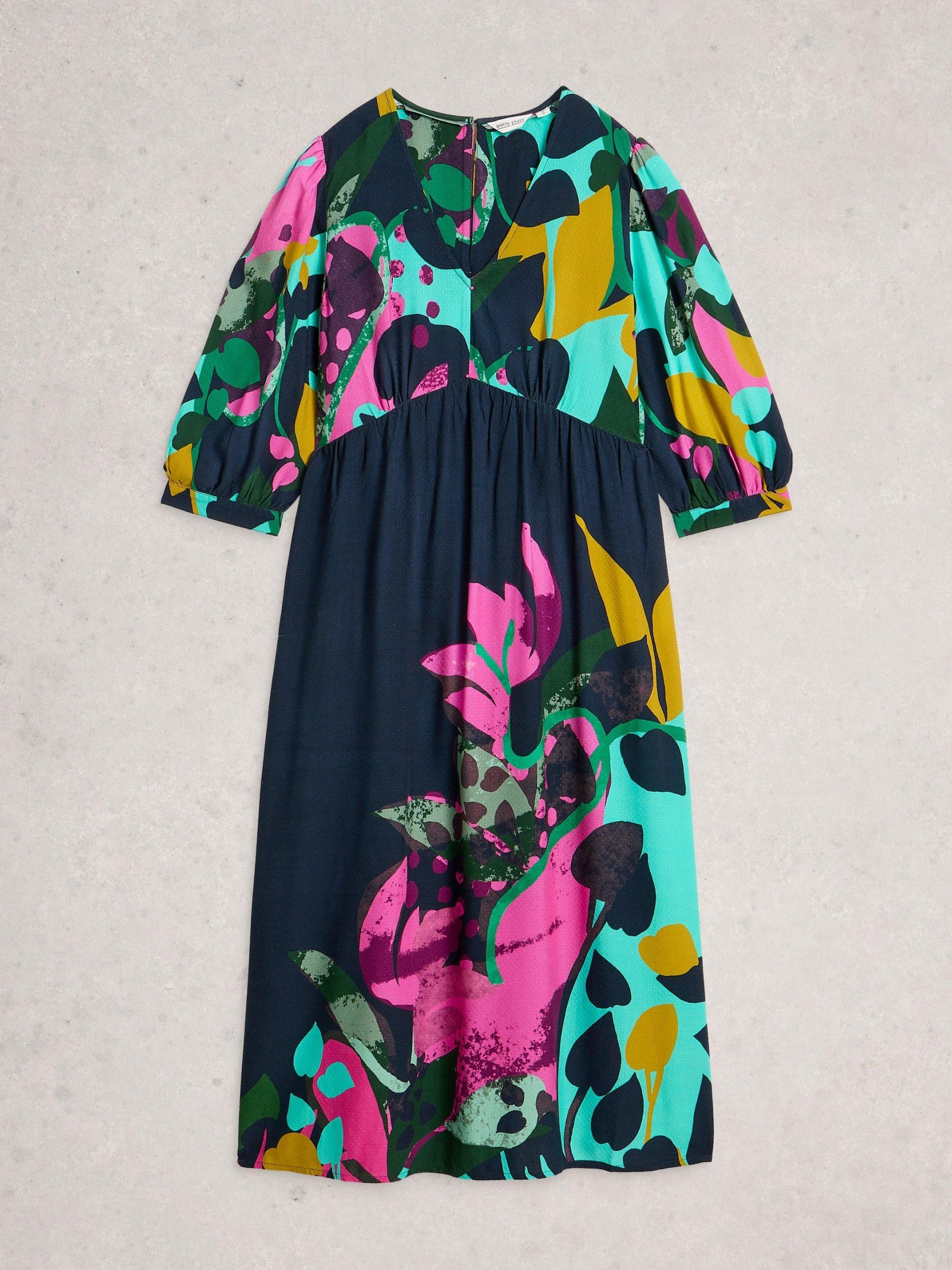 The dress that does errands and eveningwear without breaking a sweat. It’s 100% Ecovero viscose. Comfortable enough to be sensible. And detailed, printed and ruched enough to be a showstopper.