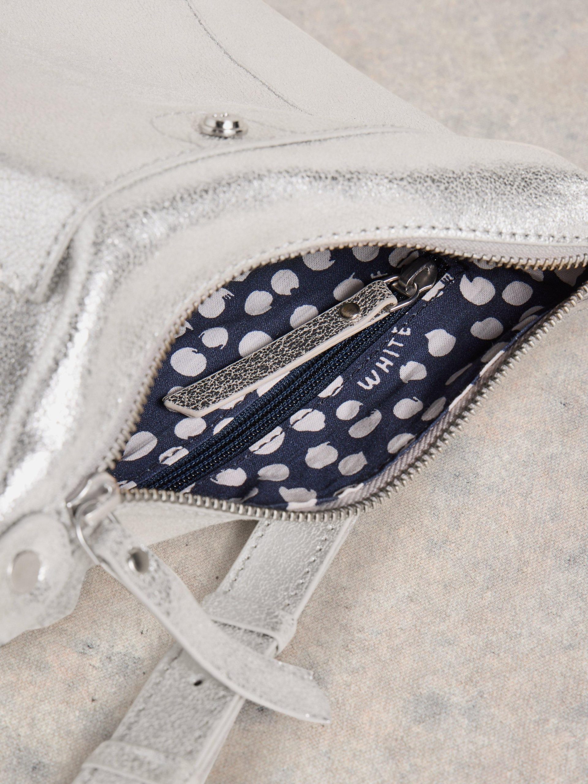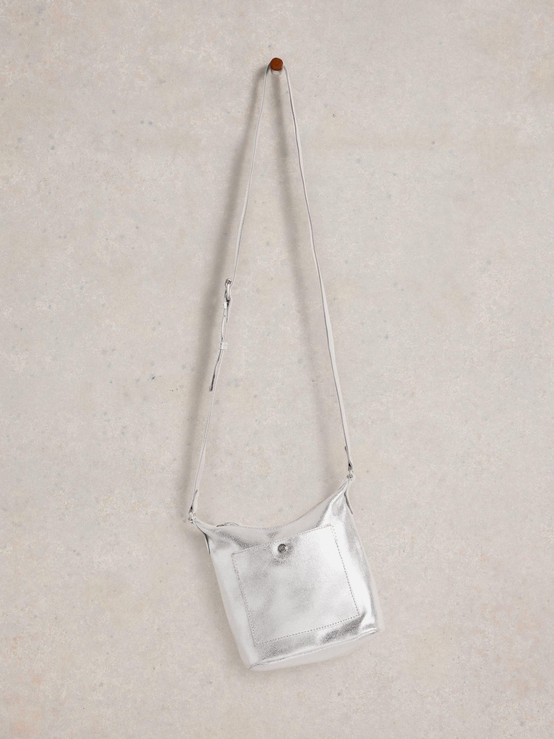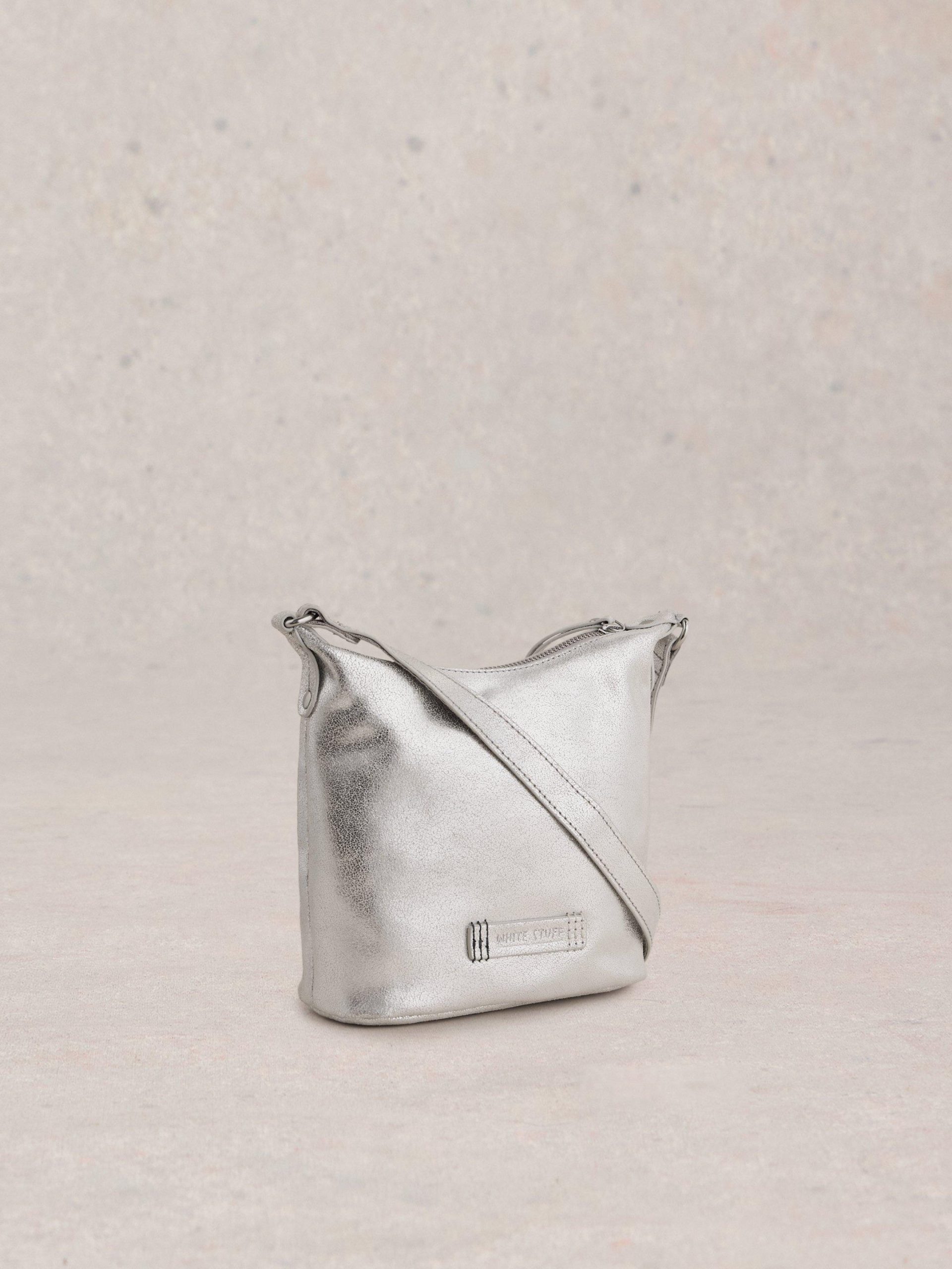 White Stuff Women’s Mini Leather Fern Crossbody | Silver Tone Metallic