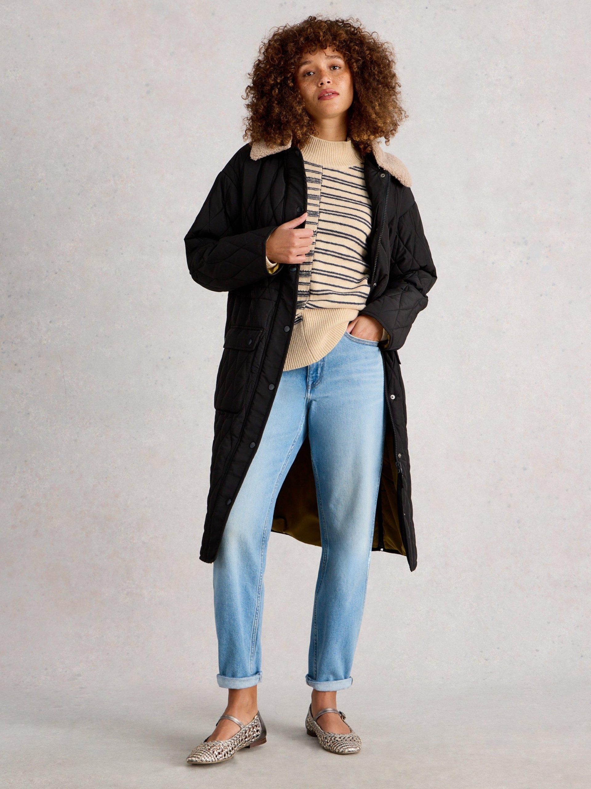 Got your eyes set on stripes? This stand-neck jumper’s for you. Complete with button detailing and a cosy knit.