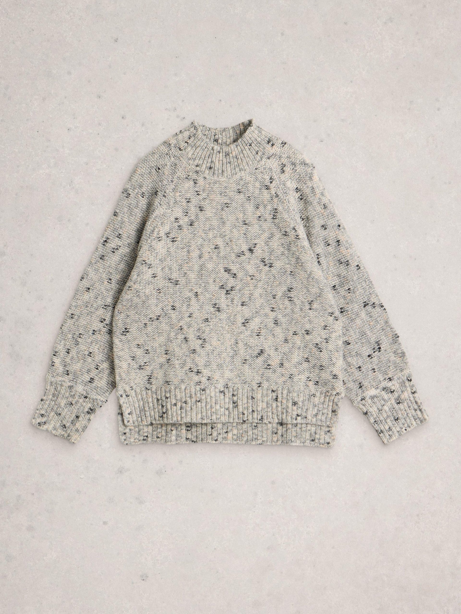 Roll up, roll up. We’re talking about this roll-neck knit, of course. (The all-over nep detailing reminds us of a scoop of chocolate chip ice cream.)