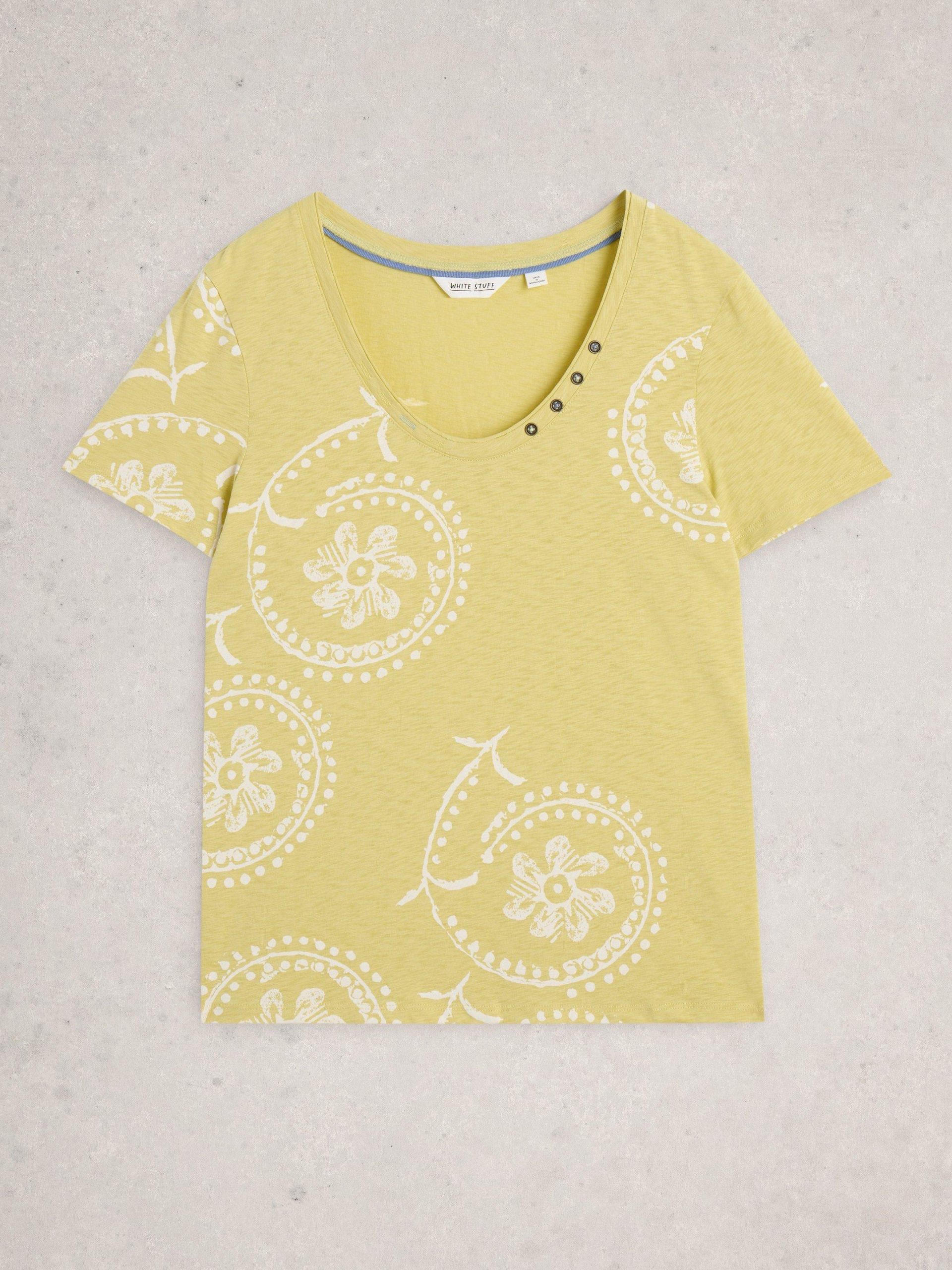 This comfy cotton tee has a nice scoop neckline with cute button details. It’s also part of our Fairtrade collection. So, you know, lots of reasons to love it.