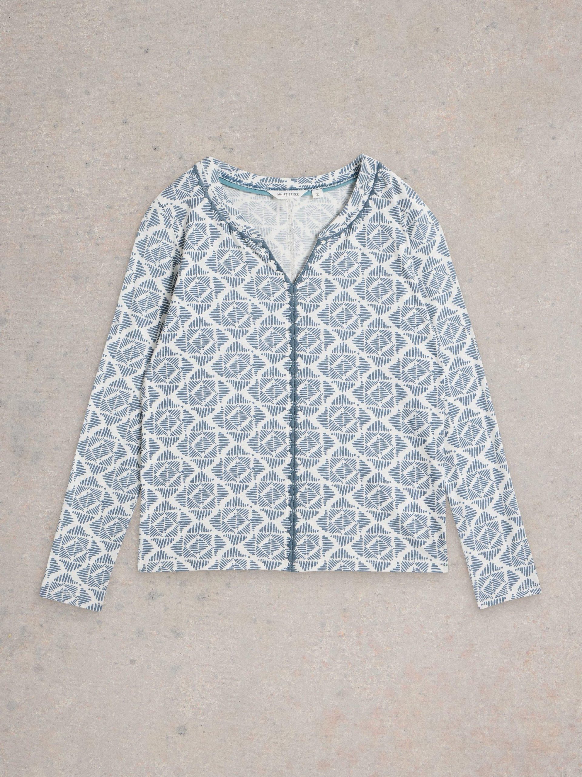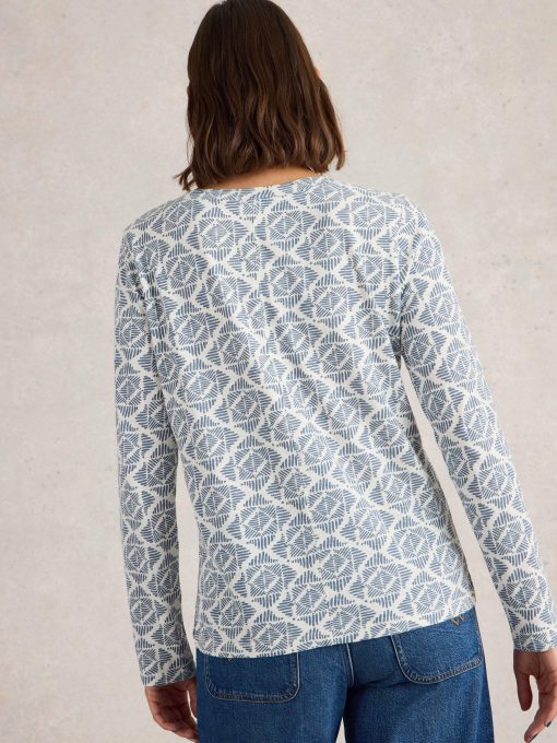 The Nelly tee is one of our all-time favourites. (That’s why we make them in so many colours and prints.) Here’s our long sleeved version with a cool new print and a bit of embroidered detail.