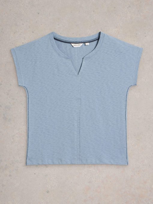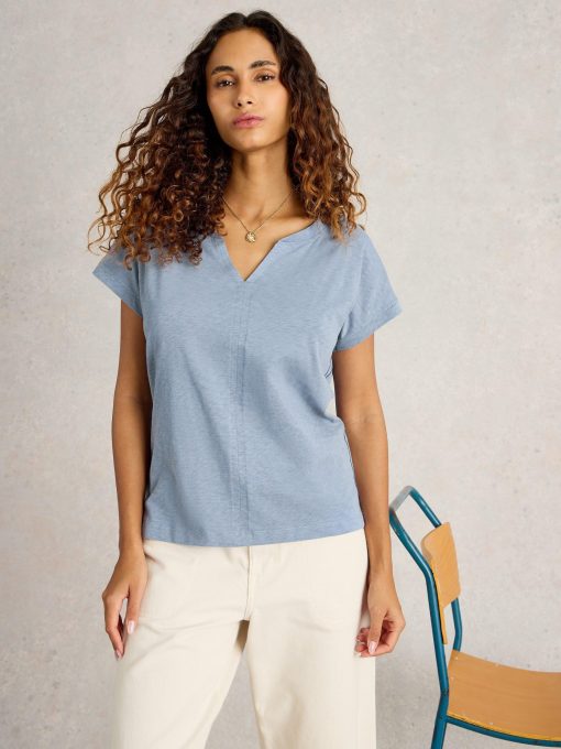 White Stuff Women’s Nelly Notch Neck Short Sleeve Tee | Mid Blue