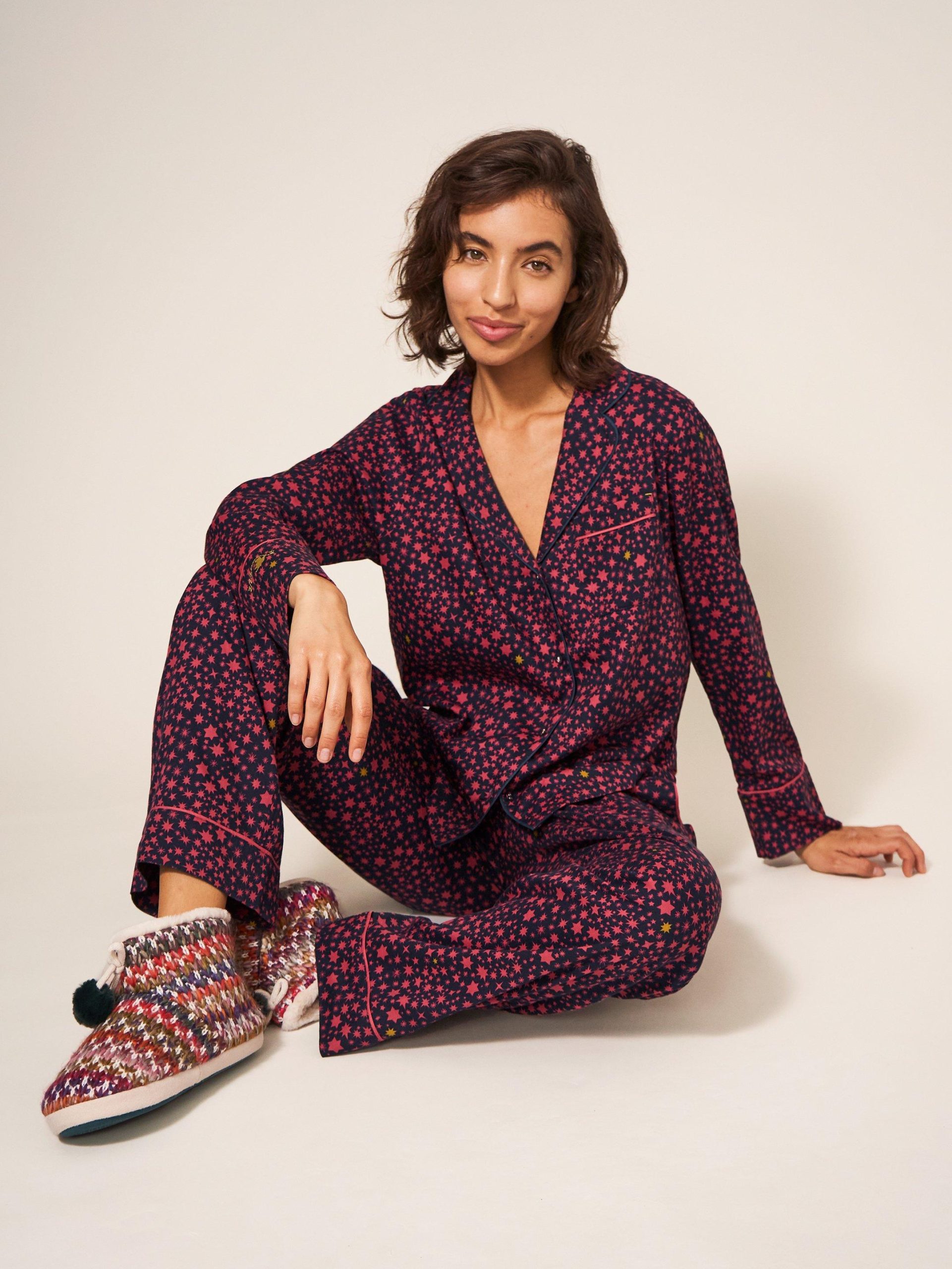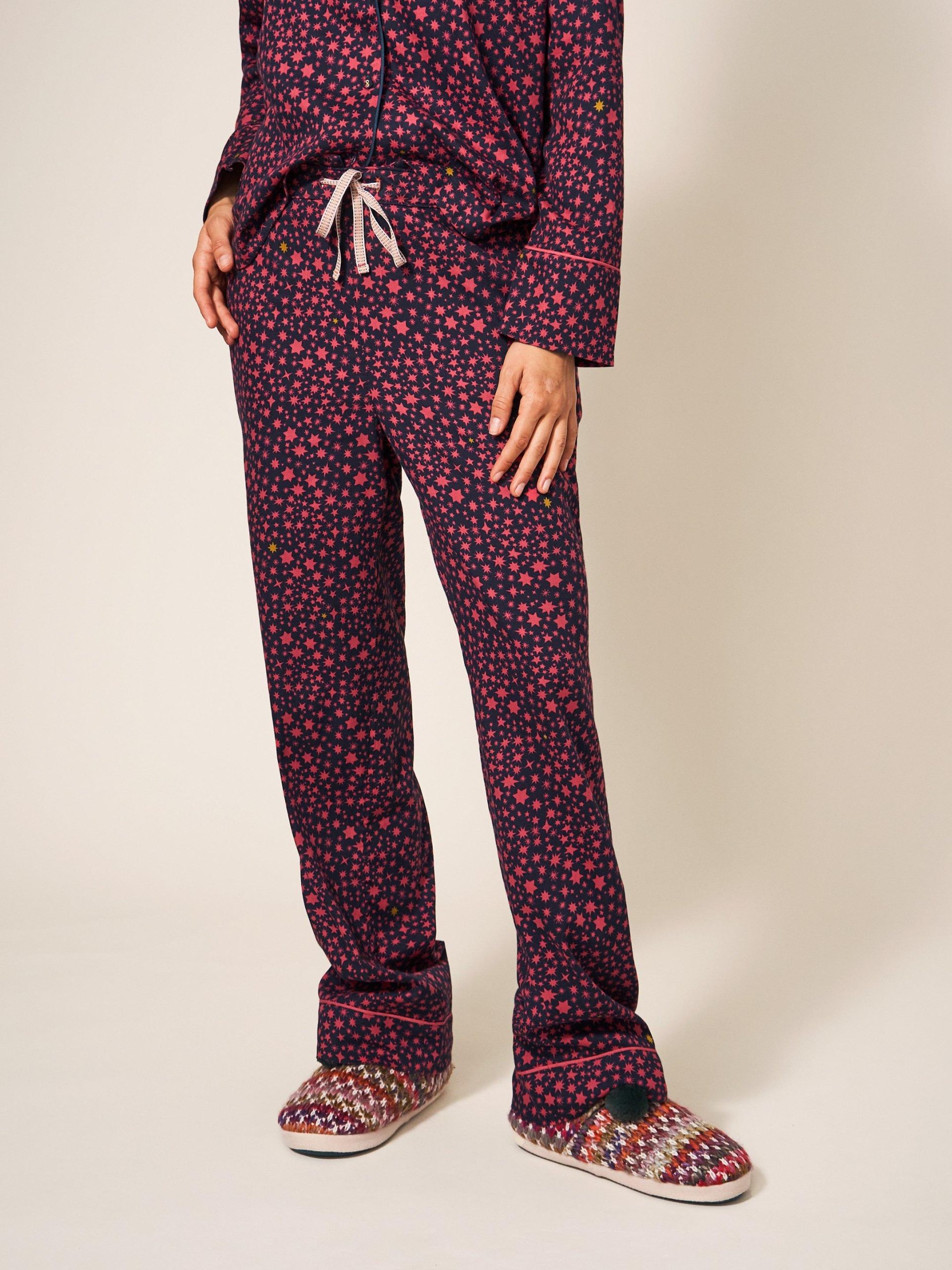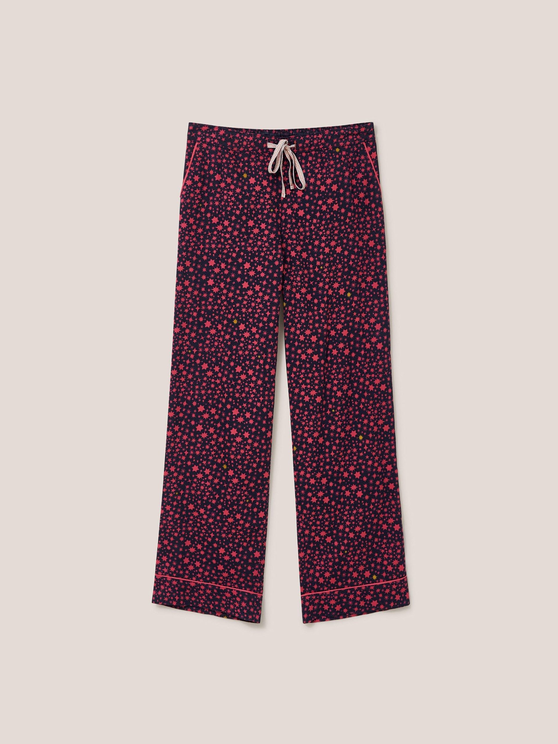 Printed pyjama trousers with contrast pattern cuffs, signature embroidery and a super soft finish. They’ve got pockets too. For hiding midnight snacks and so forth.