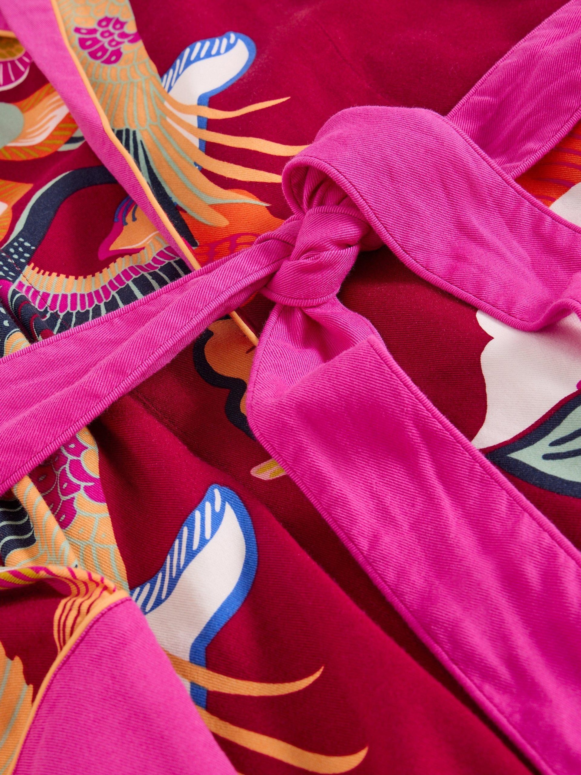 Wrap yourself in comfort with this woven dressing gown. It’s got a lovely bright print and a tie waist. (Early nights never looked so good.)nStyle with these slippers