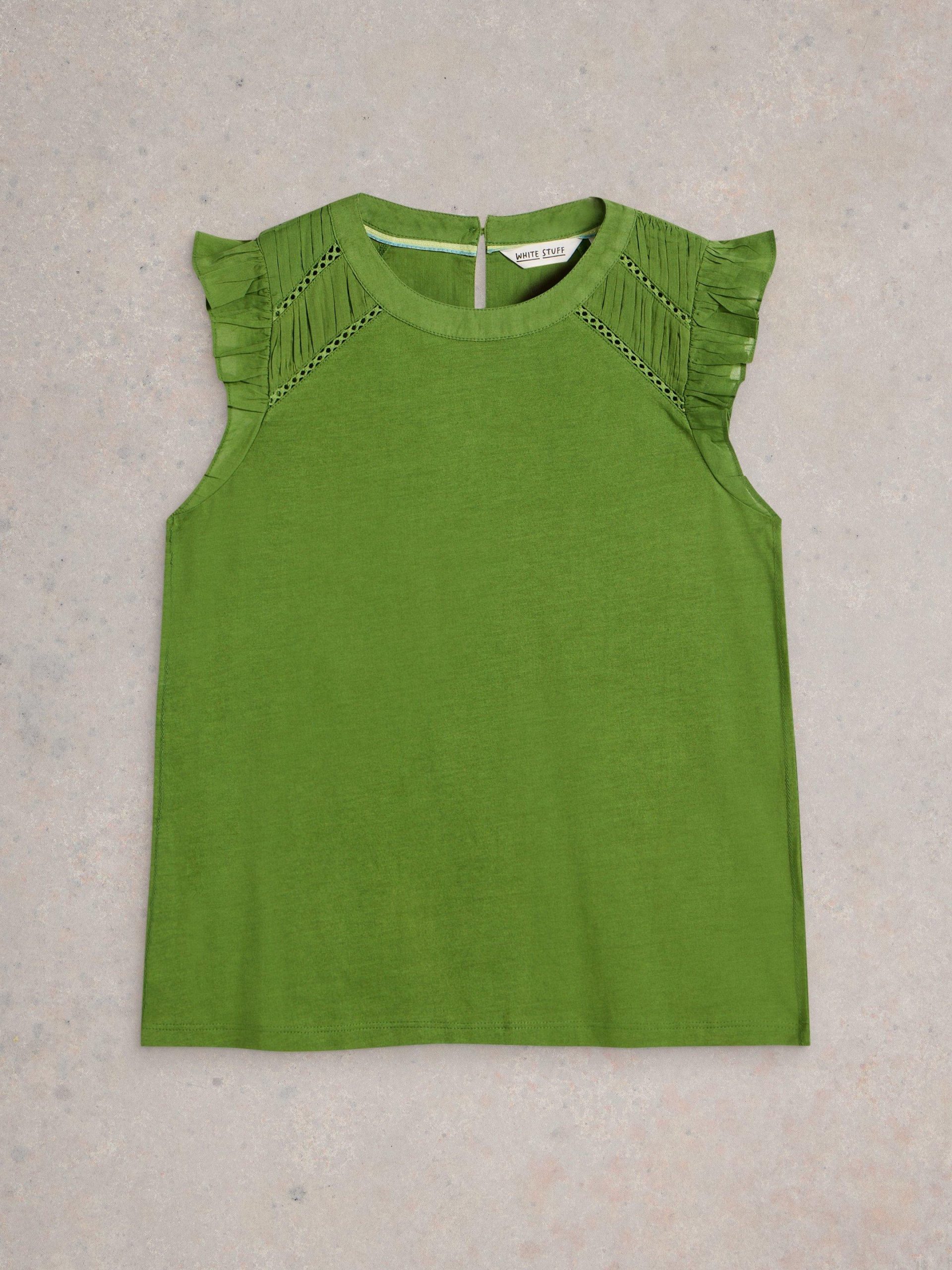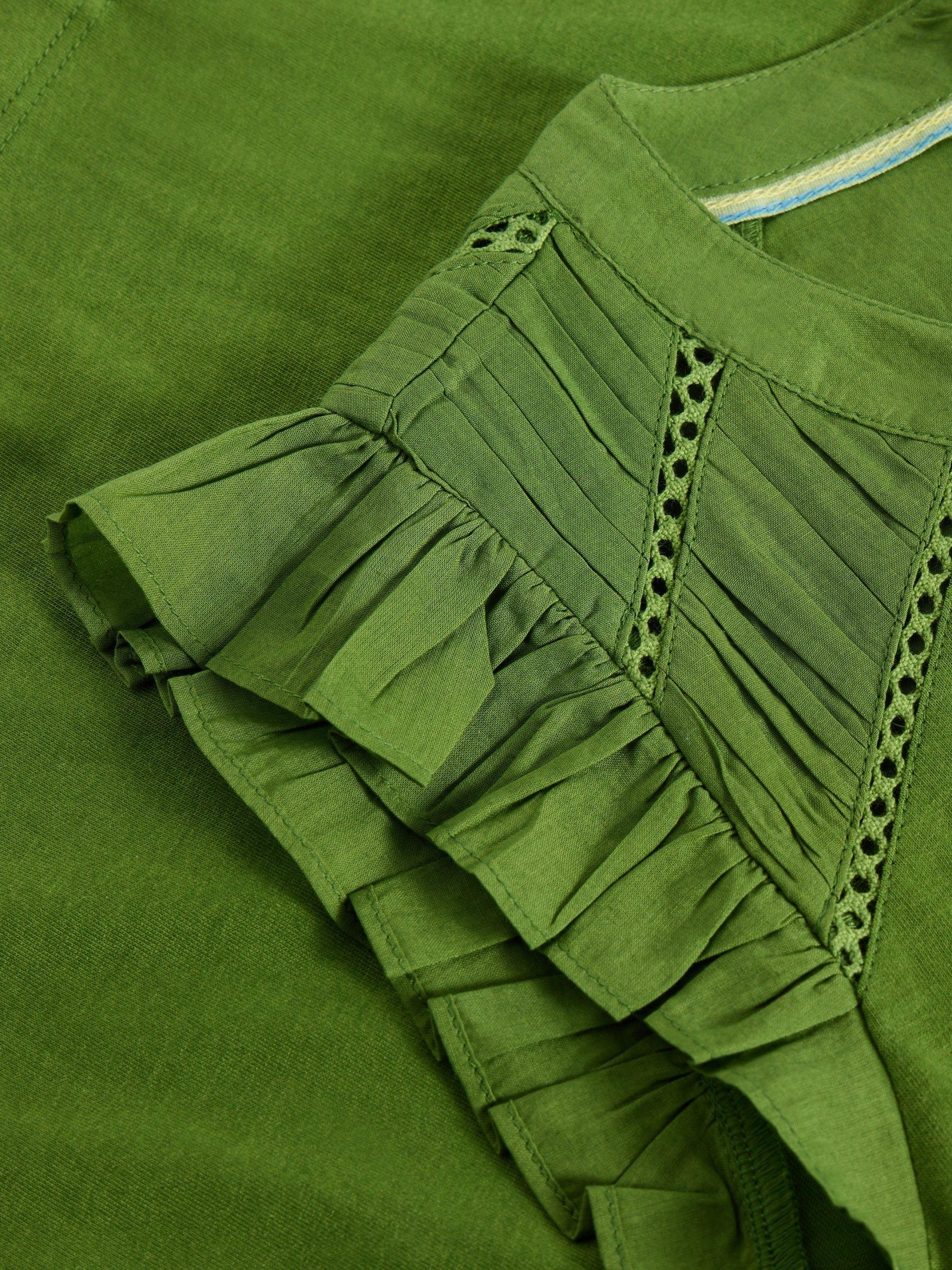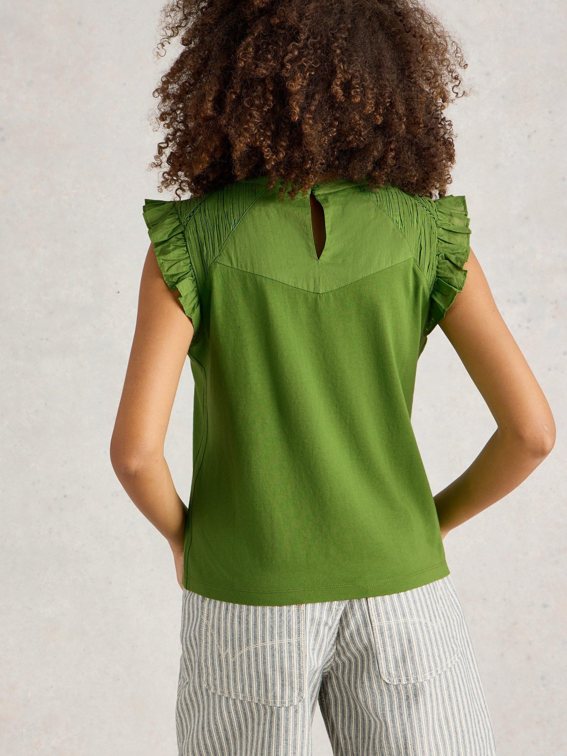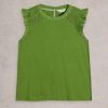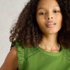It’s all in the shoulders. Specifically broderie details and a few fun frills. This top is made with an organic cotton and LENZING™ ECOVERO™ viscose blend. We’re sold.