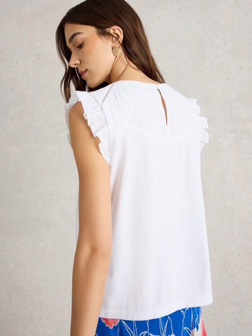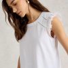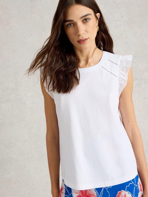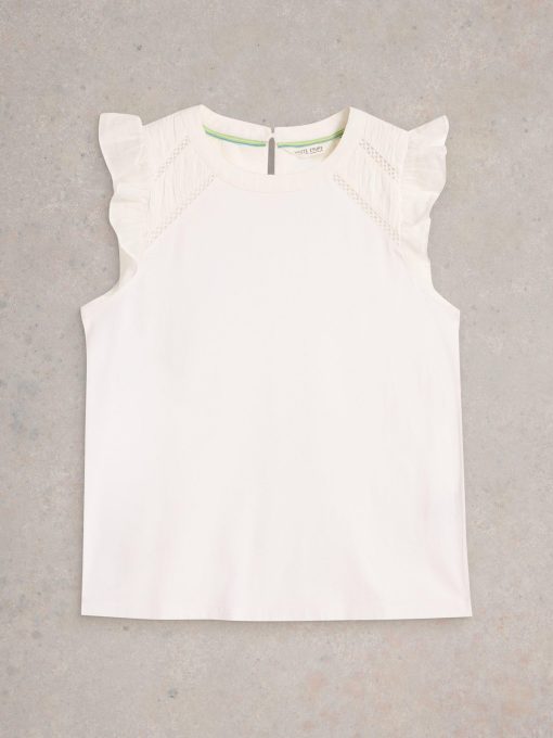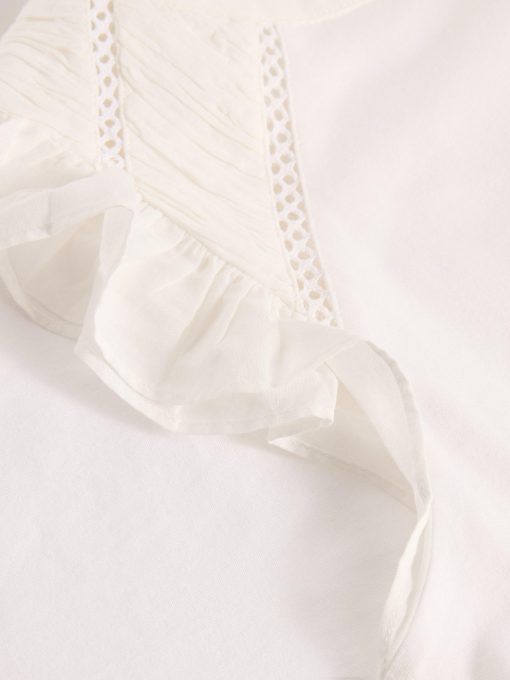 It’s all in the shoulders. Specifically broderie details and a few fun frills. This top is made with an organic cotton and LENZING™ ECOVERO™ viscose blend. We’re sold.
