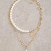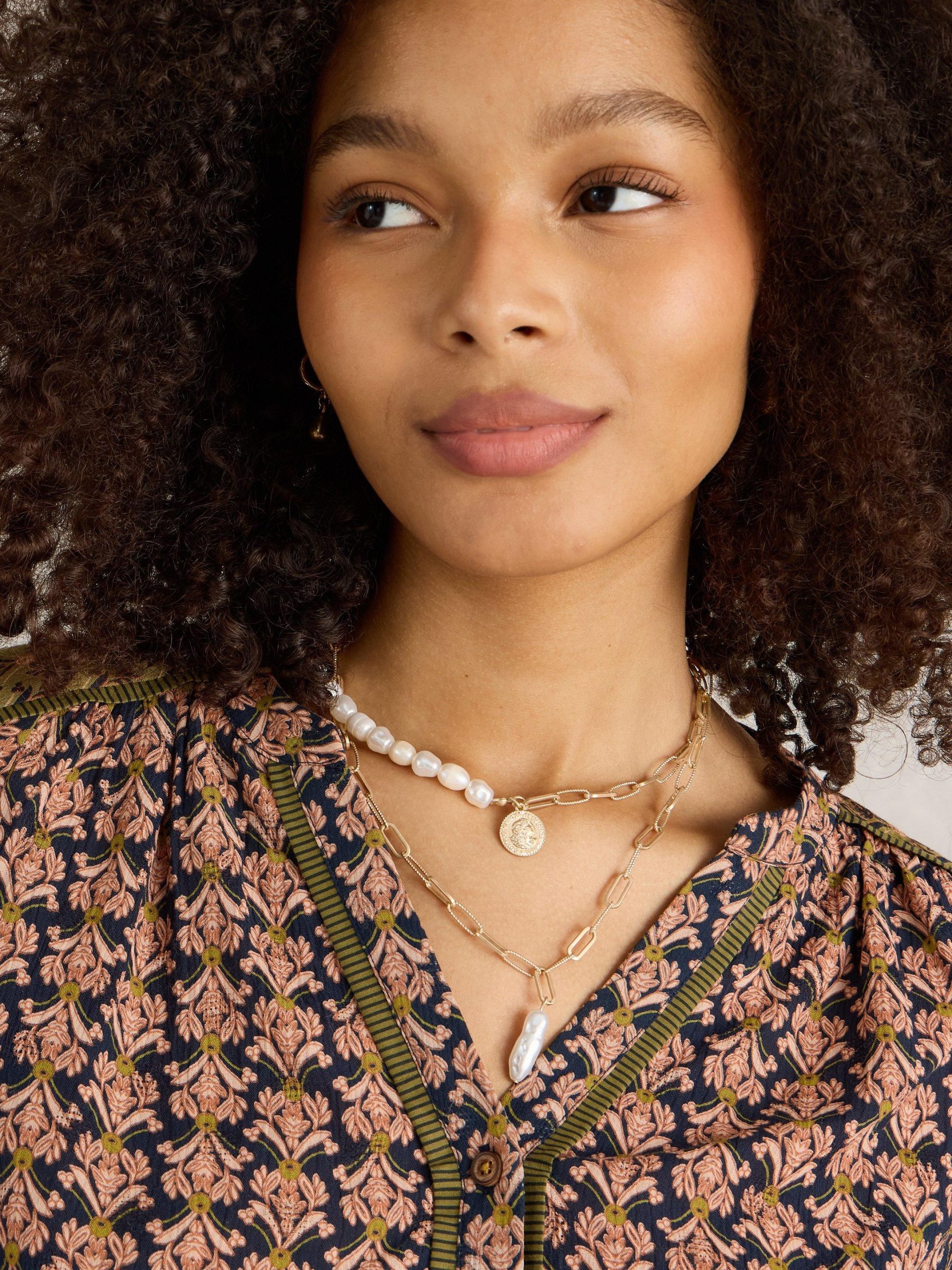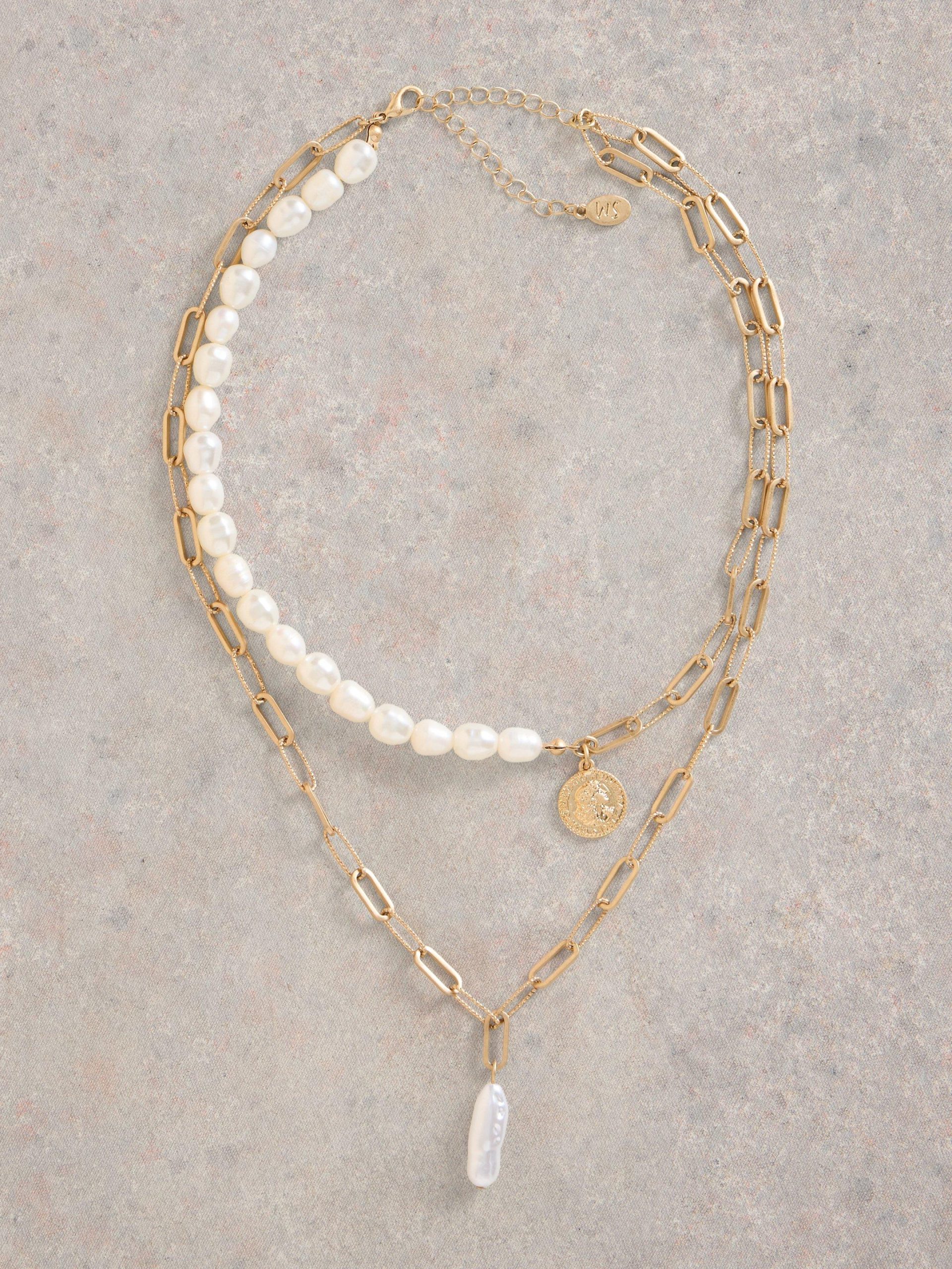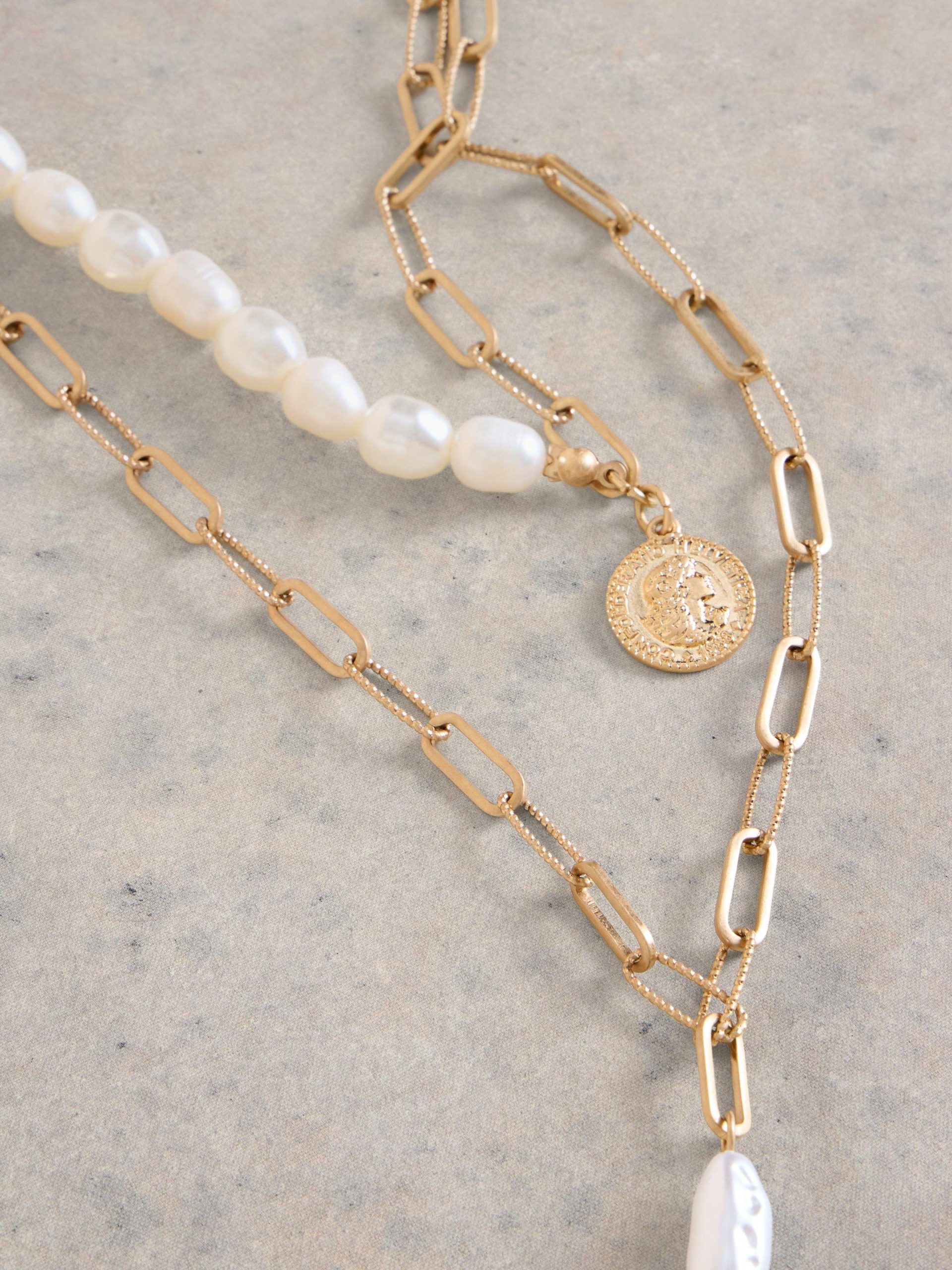 White Stuff Women’s Pearl Multi Layer Necklace | Gold Tone Metallic