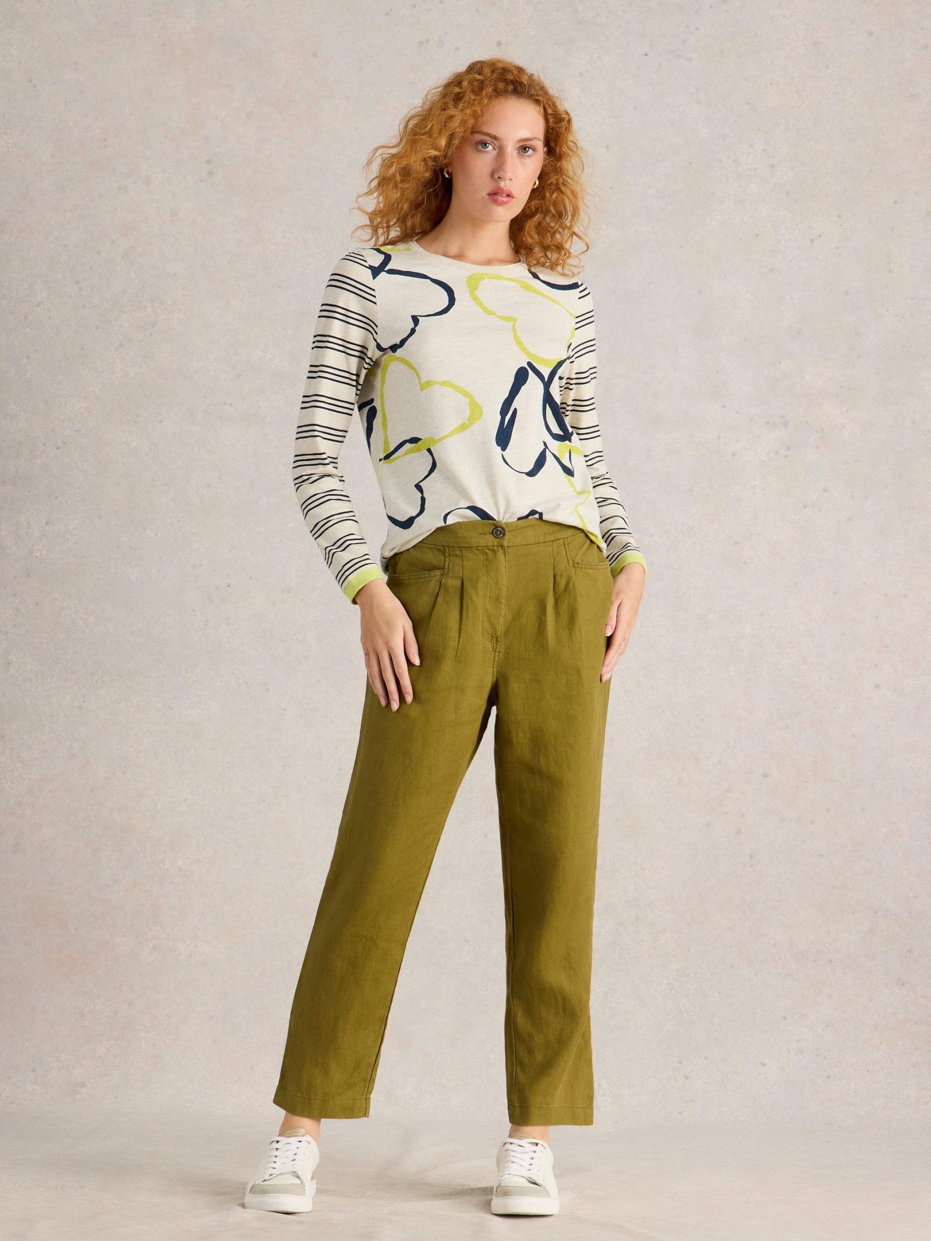 Linen. The fashion symbol of summer. Which is why we love it. And because it’s comfy, cool and breathable. In a tapered full-length, these trousers are the perfect pair to wear as summer begins (and ends, but we don’t want to think about that).
