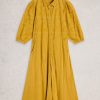 White Stuff Women’s Rua Embroidered Collared Jersey Dress | Mid Chartreuse