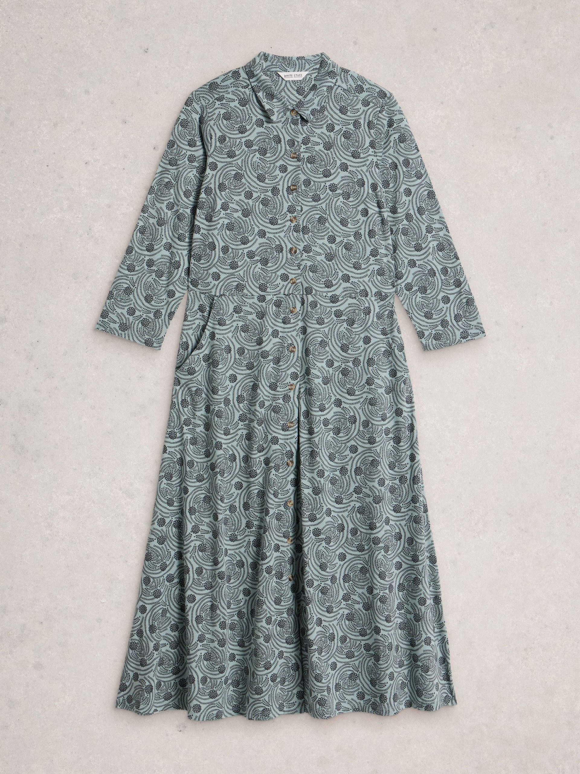 White Stuff Women’s Rua Jersey Collared Shirt Dress | Blue Print