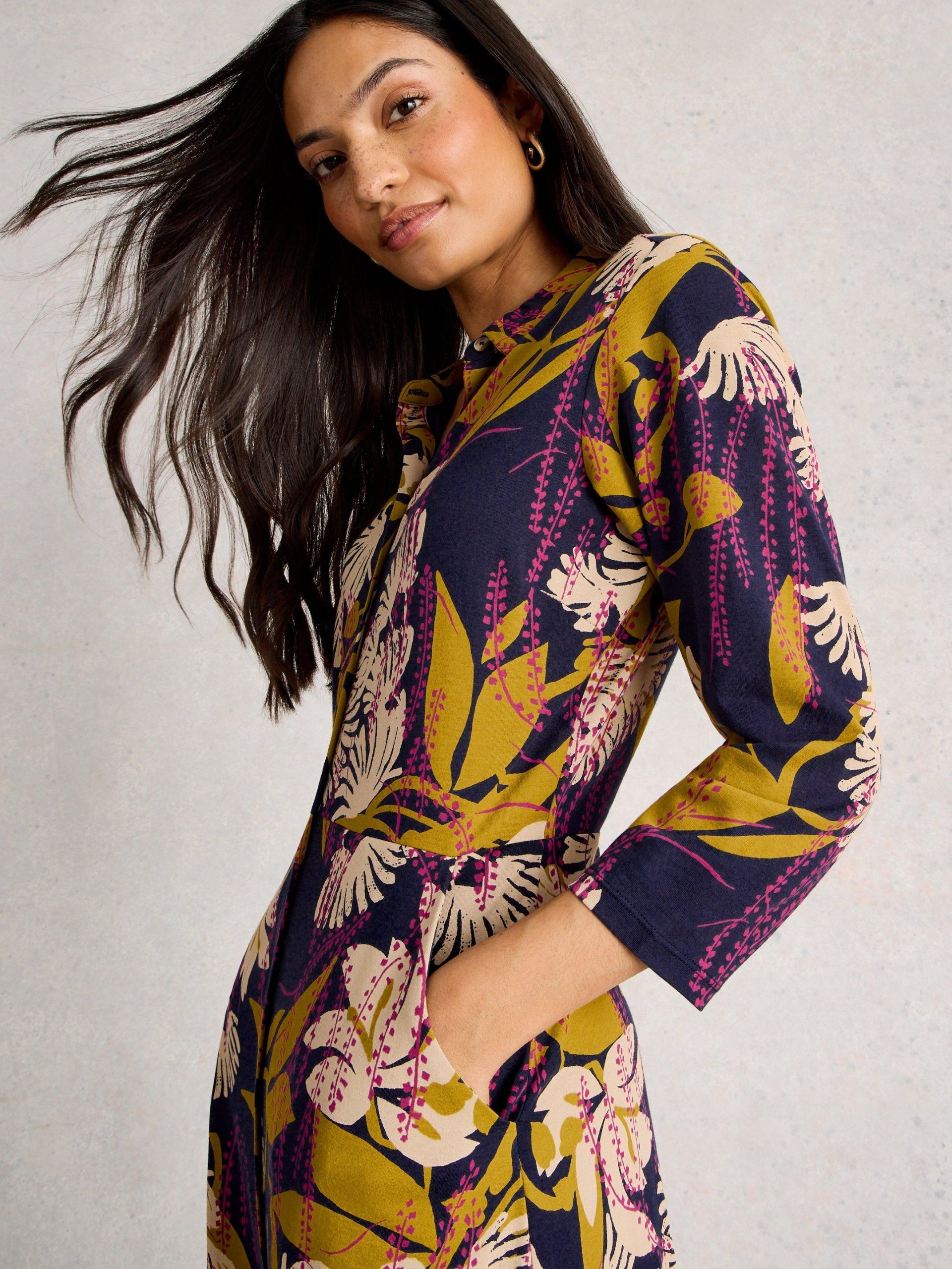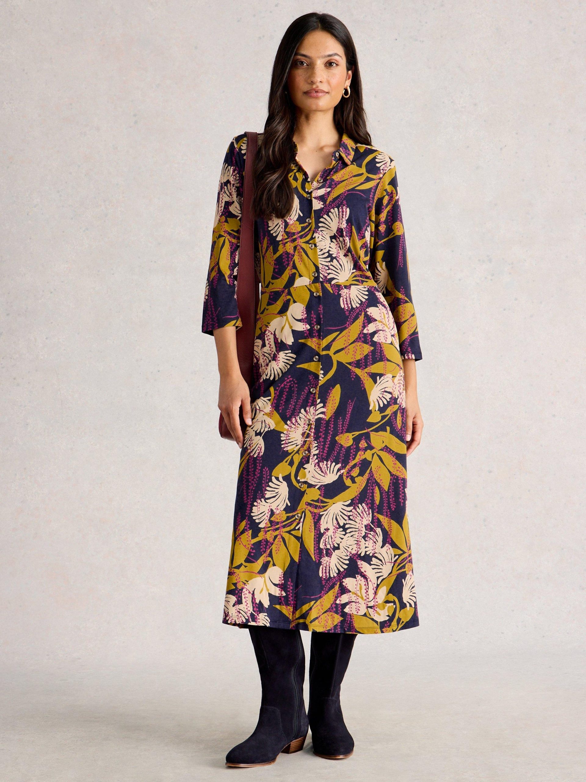 We’ve brought it back again. Love it for its super soft fabric, flattering midi length and the charming, muted floral pattern. A style that’s always in bloom.