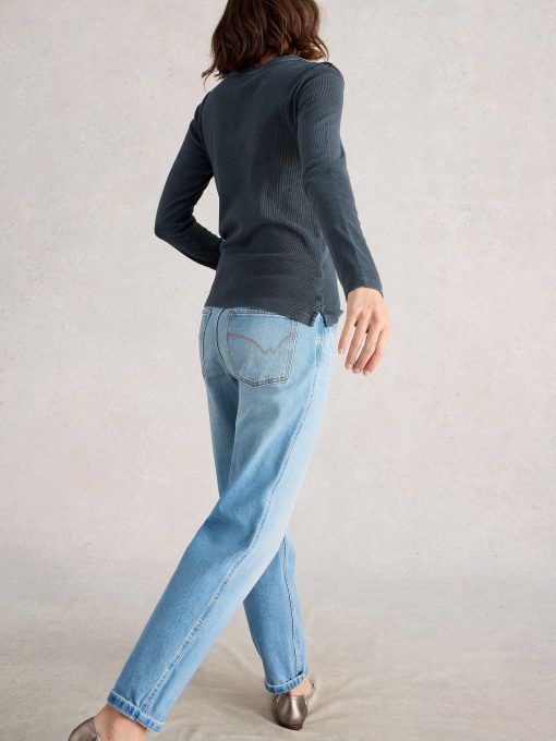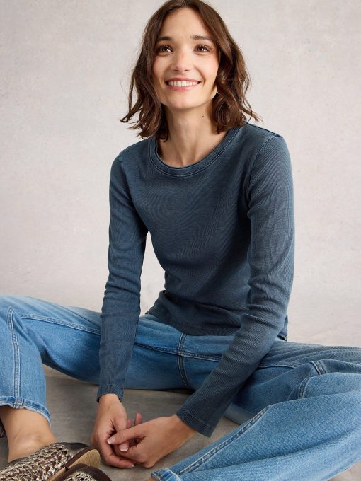 White Stuff Women’s Sadie Crew Neck Rib Tee | Mid Blue