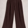 Bye bye, uncomfortable trousers. Welcome, wide leg. These ones are made using 100% TENCELâ„¢ Lyocell (which is really soft), and have pleats at the top for a drapey feel.