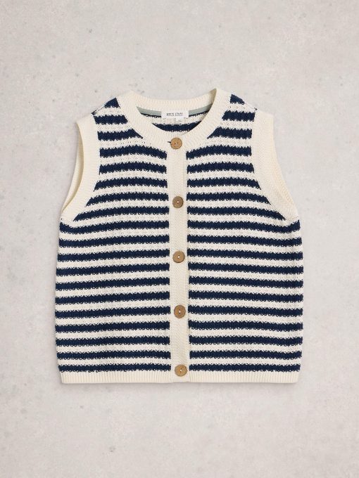 Don’t push your knitwear aside this summer. Rethink it with styles like this button-down tank. Layer over a white tee, pair with jeans and some slip-on mules.
