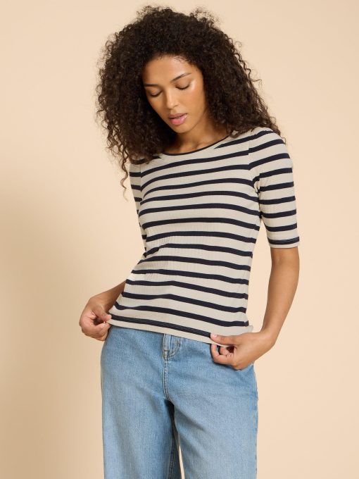 White Stuff Women’s Stripe Puff Sleeve | White Multi