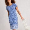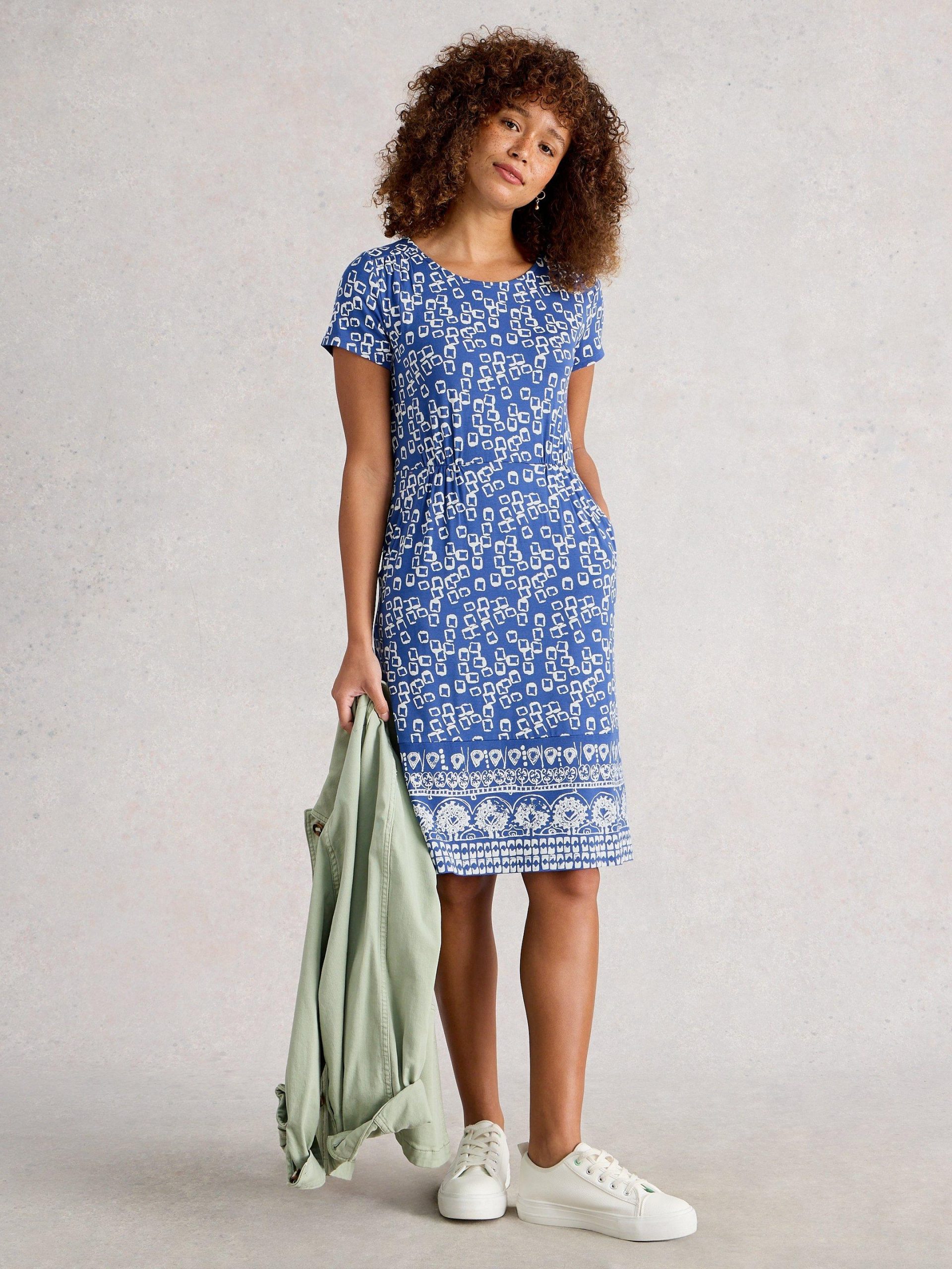 White Stuff Women’s Tallie Jersey Short Sleeve Crew Neck Dress | Blue Print