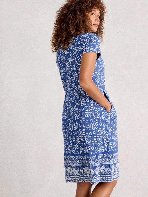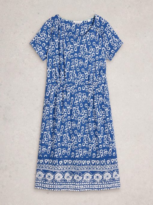 White Stuff Women’s Tallie Jersey Short Sleeve Crew Neck Dress | Blue Print