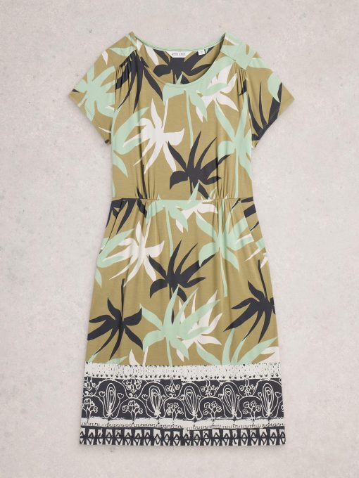 White Stuff Women’s Tallie Jersey Short Sleeve Crew Neck Dress | Green Multi