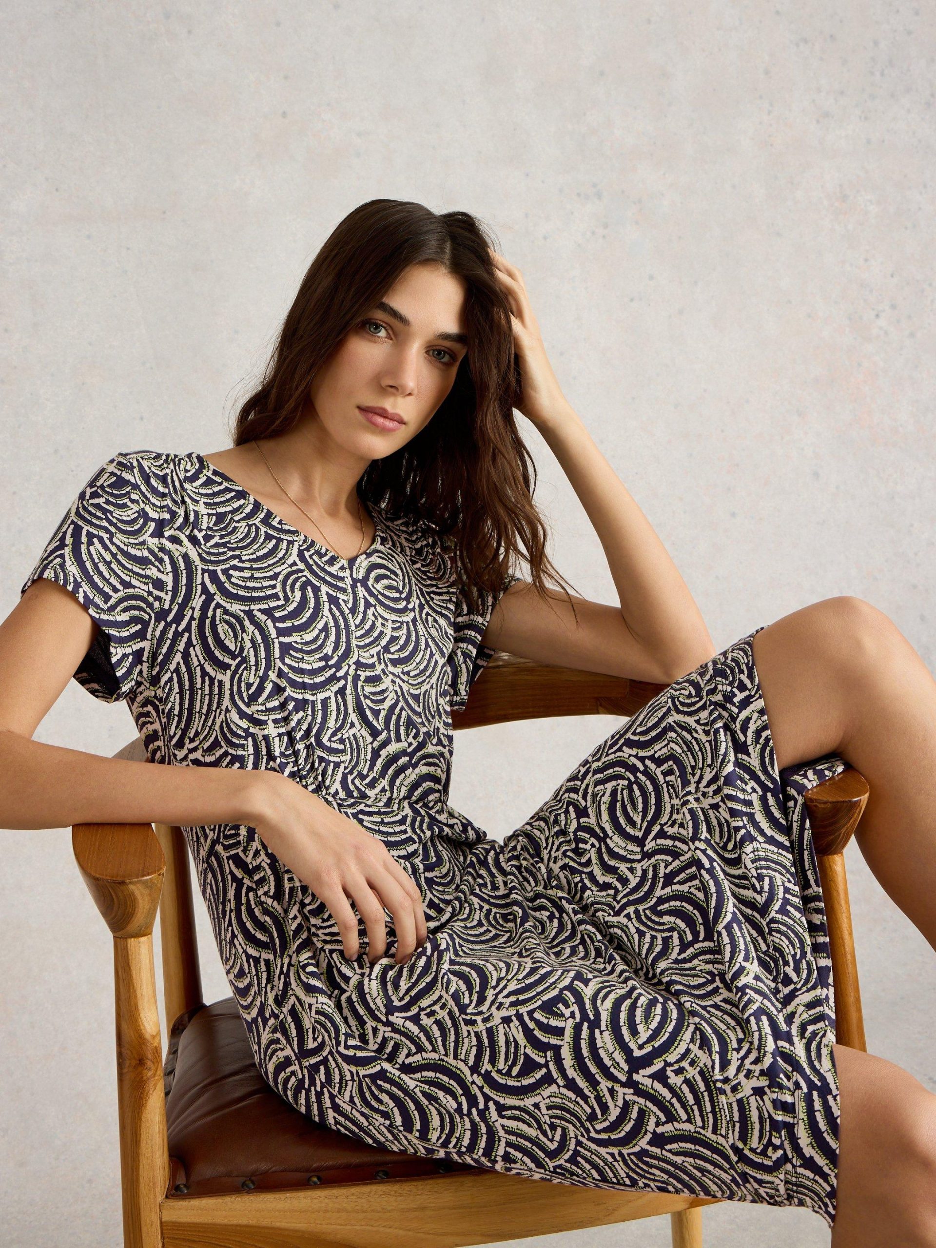 White Stuff Women’s Tallie Jersey Short Sleeve Dress | Navy Print