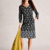 White Stuff Women’s Tallie Knee Length V Neck Jersey Dress | Black Multi